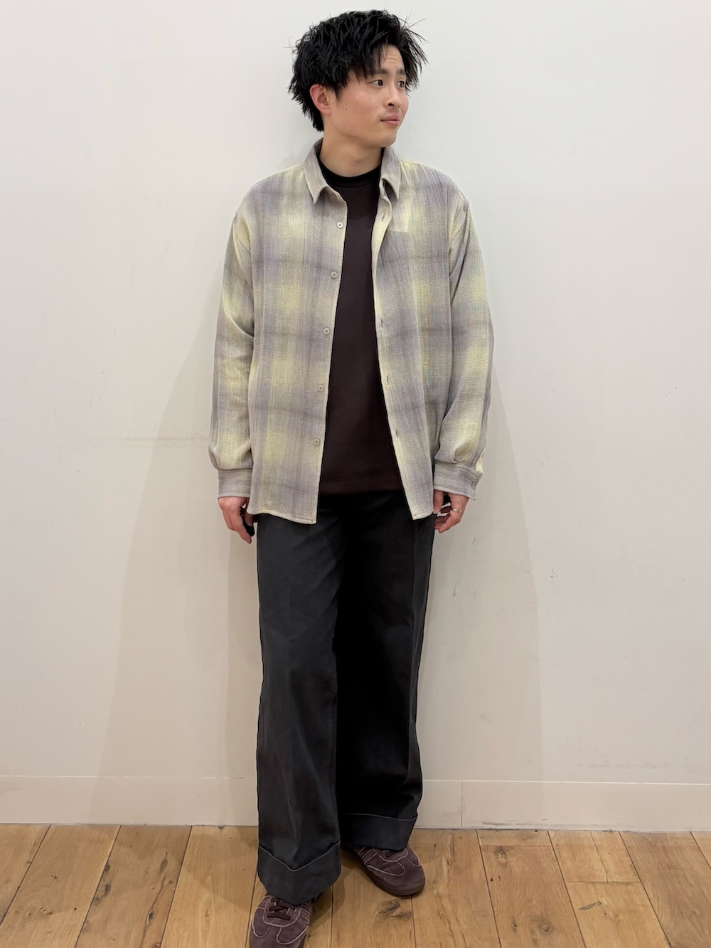 生地が丈夫でデニムより程よいハリ感があるカツラギパンツを合わせました!