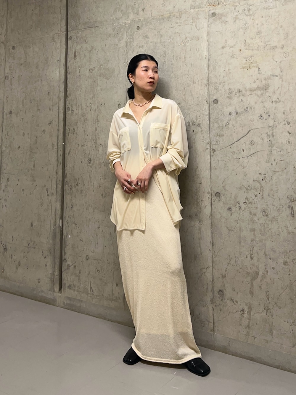 アイボリーのスカートと合わせてワントーンコーデにしました^^