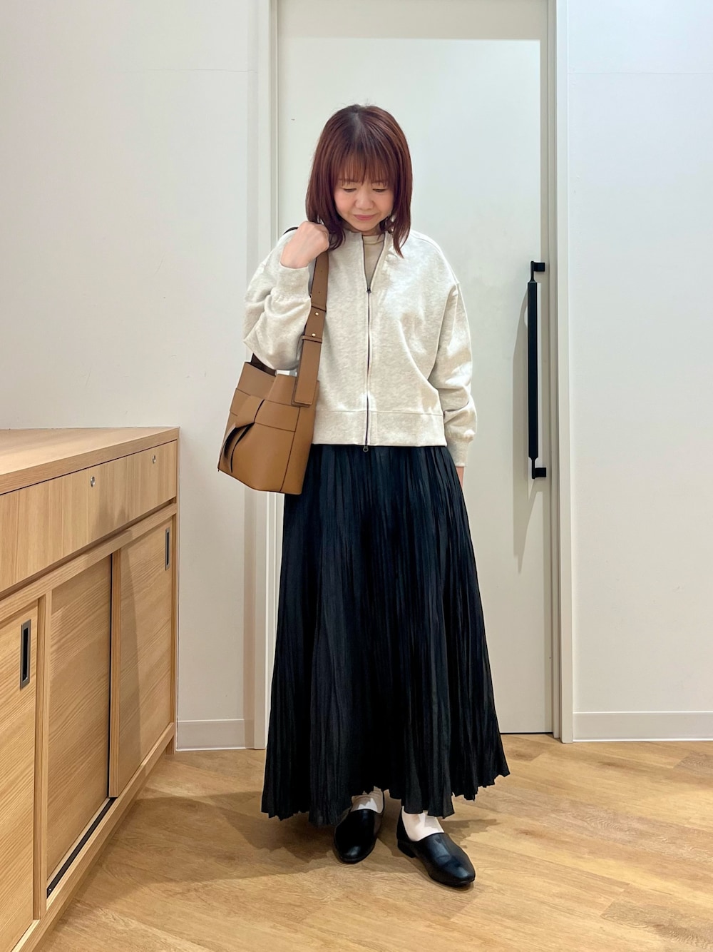 今回はシンプルにスウェードスカートと合わせて、バッグやバブーシュも黒でまとめたコーディネート🥿