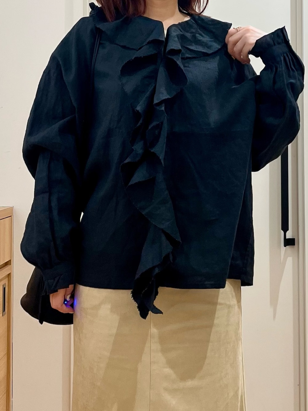 1枚で着映えるデザインですが、黒を選ぶことで甘さを抑えた大人の雰囲気に🪞