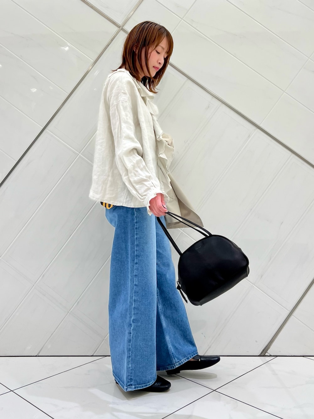 シルエットが綺麗なデニムパンツは柔らかい生地で