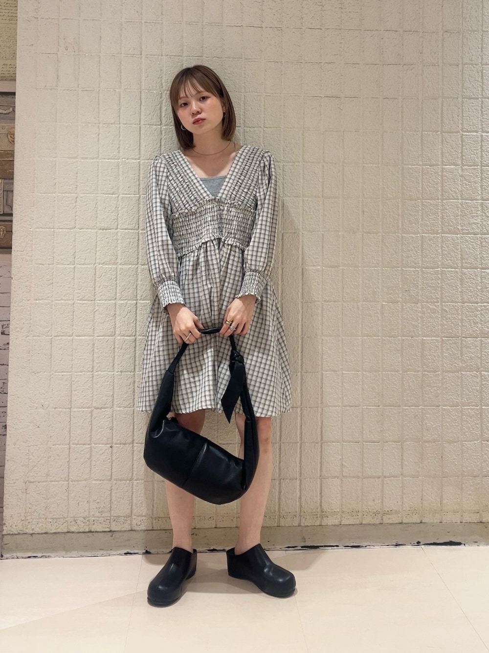 KBF2WAYシャーリングチェックミニワンピース- カラー: