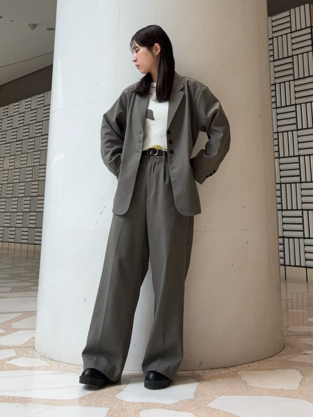 ジャケットとパンツはほんのり緑が混ざったグレーなので、春らしい雰囲気を出していただけます☘️