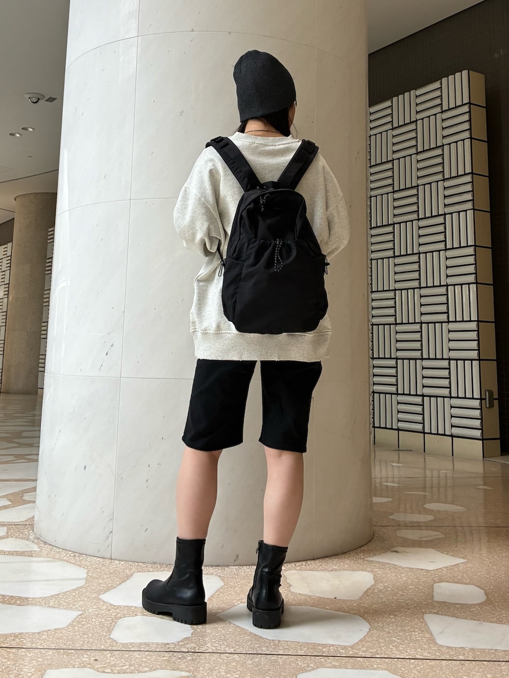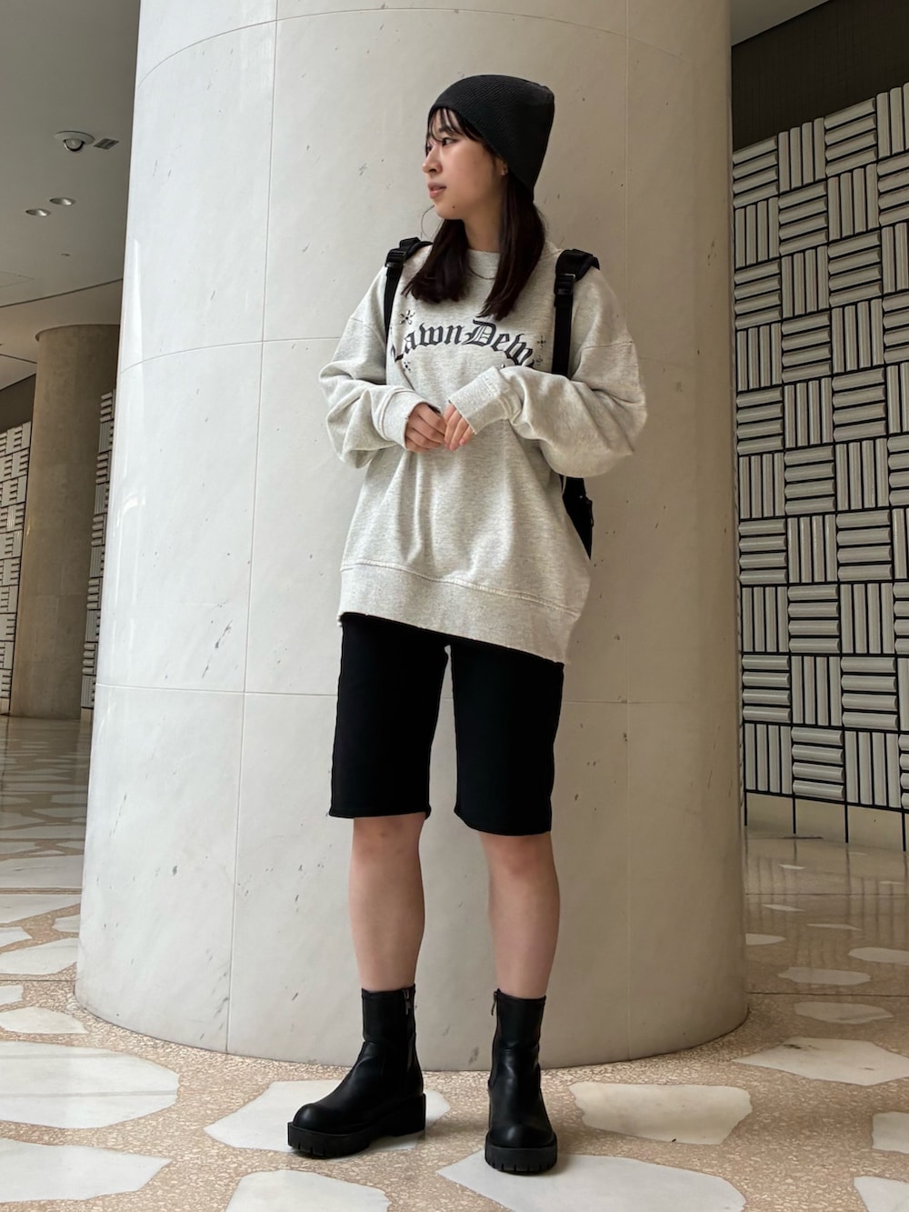 ハーフパンツ合わせででモノトーンでも大人っぽくなりすぎずに着ていただけます!