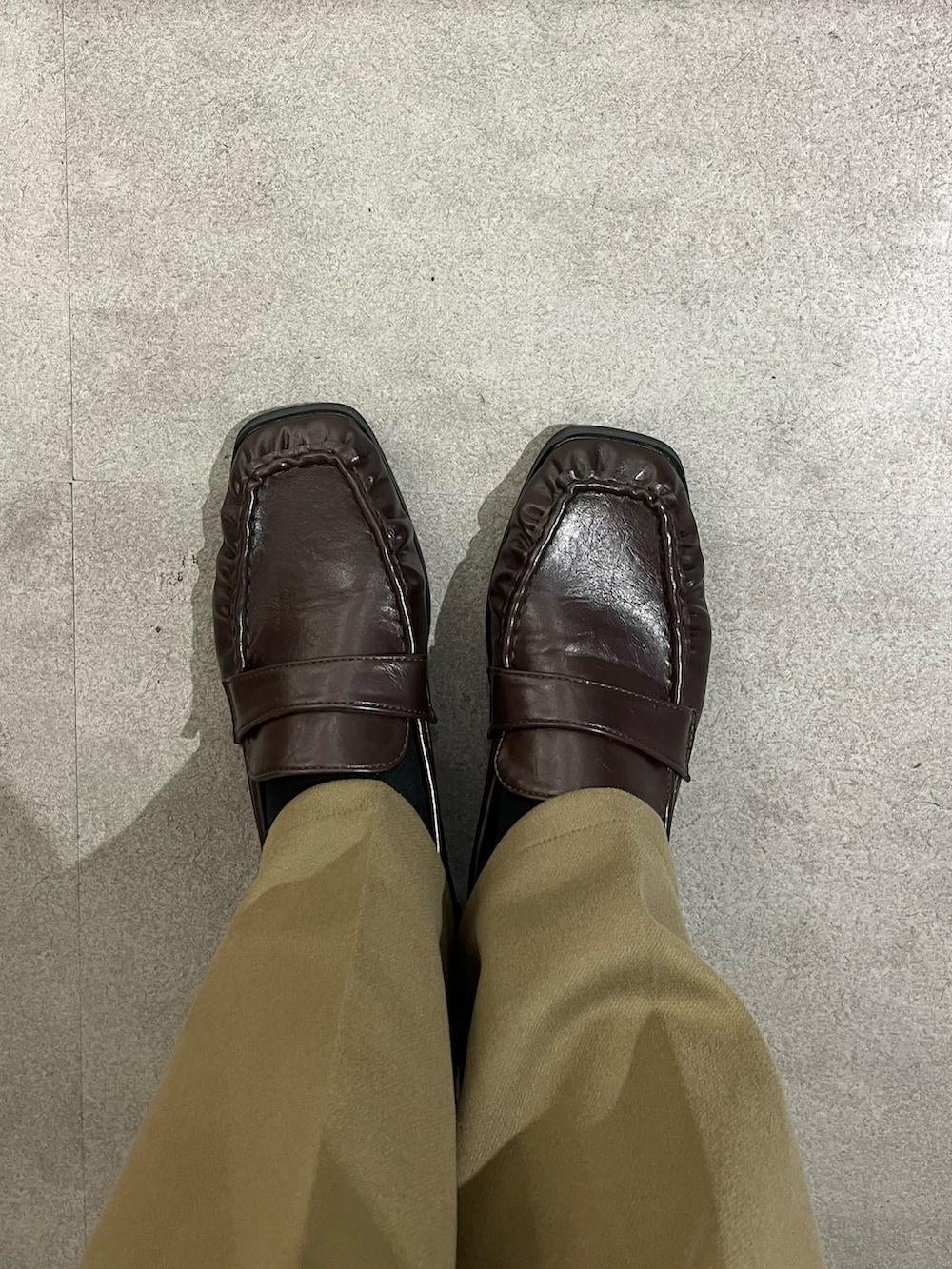 ワイドスクエアギャザーローファー
