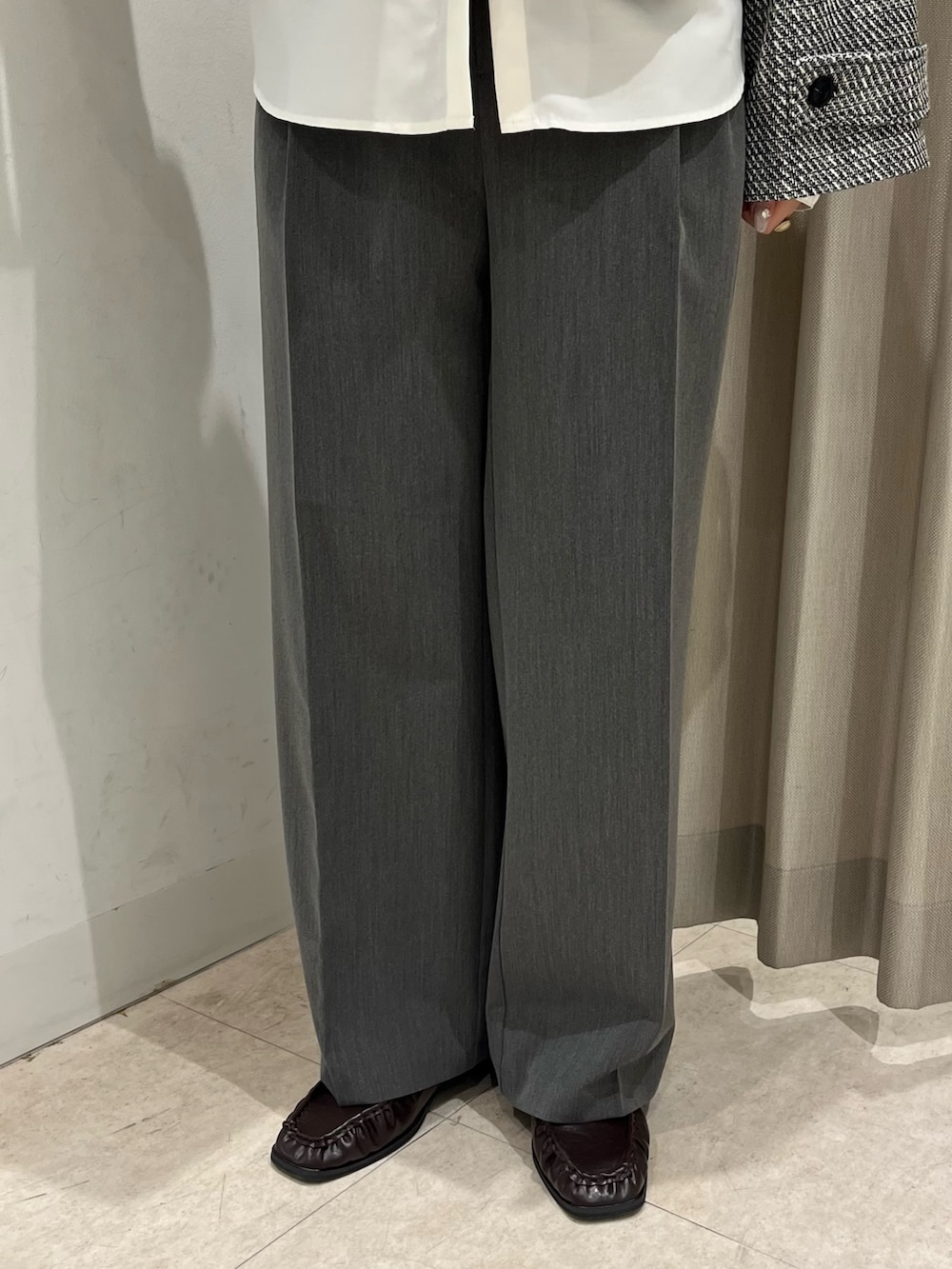 毎年大人気のワイドパンツは161cmでMサイズを着用しています。丈感ばっちりです♩