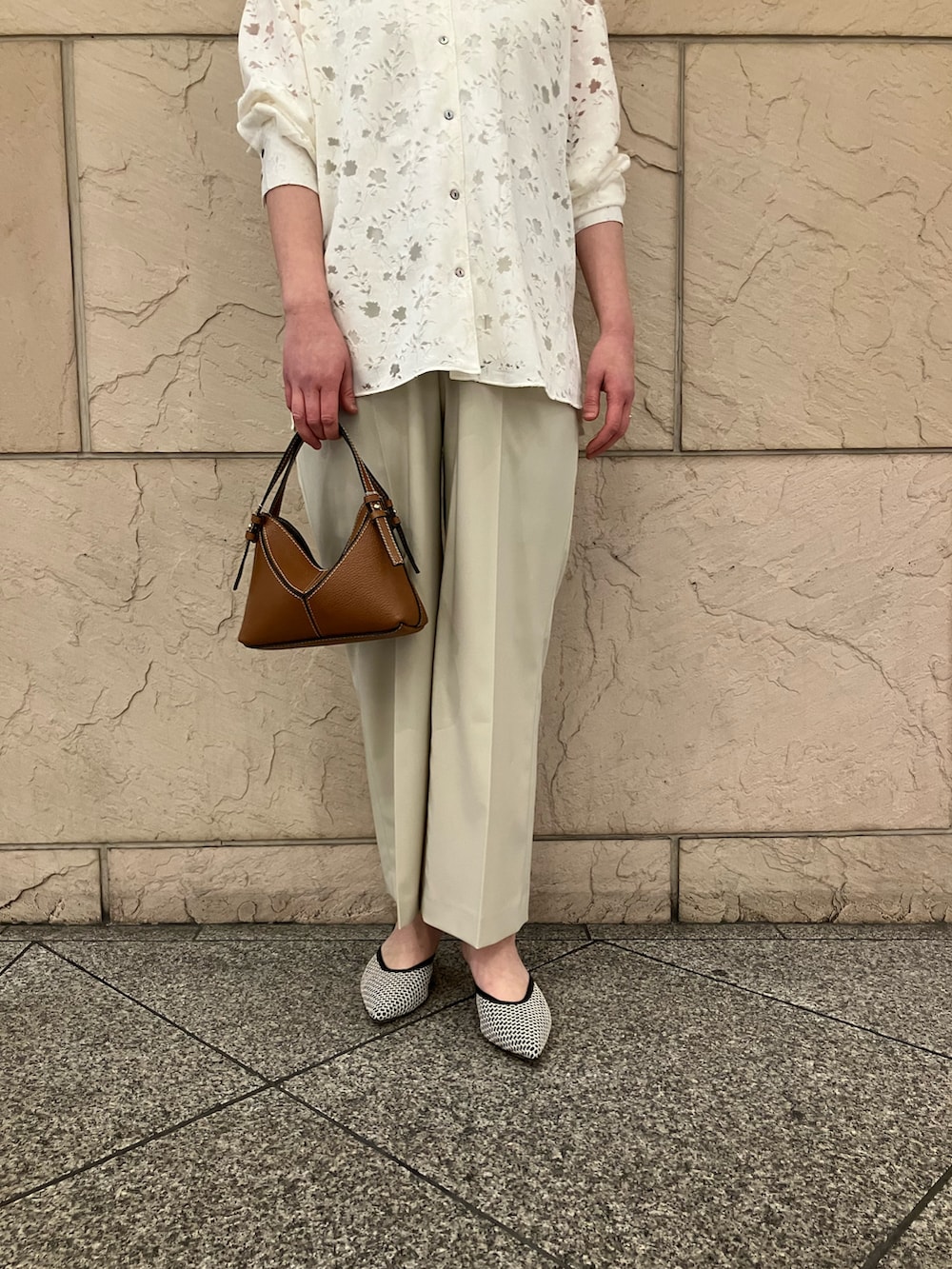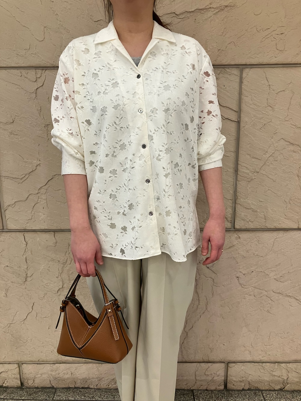 レースシャツはオープンカラーにすることで甘すぎず大人な印象できていただけます。