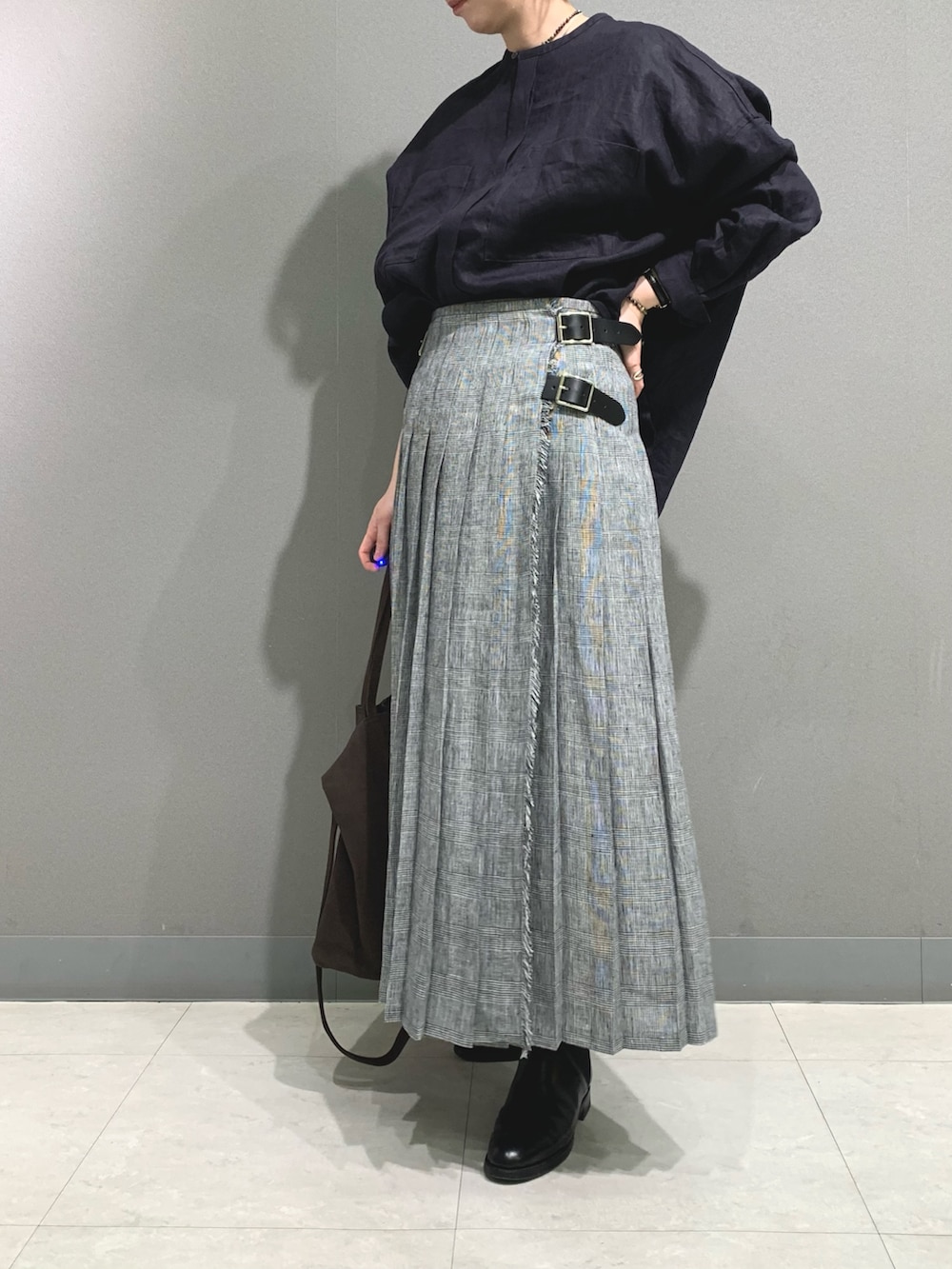 O'NEIL OF DUBLINの別注スカートです。丈が長めで若すぎないプリーツスカートに仕上がっています。グレーのチェックは落ち着いた雰囲気で、ブルーのチェックは差し色に素敵です。