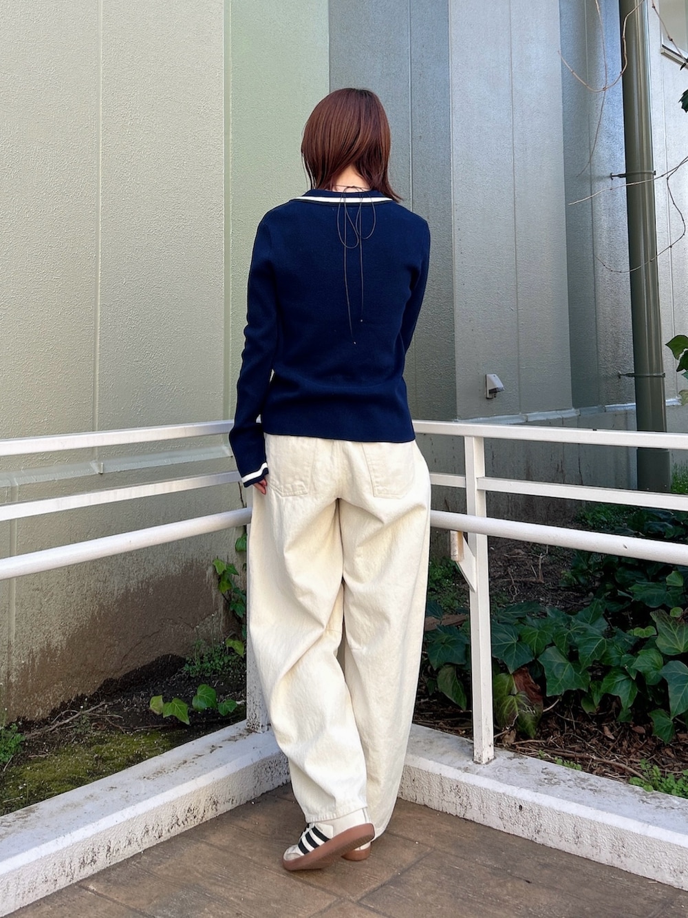 ゆるっとしたバレルレッグパンツを合わせて