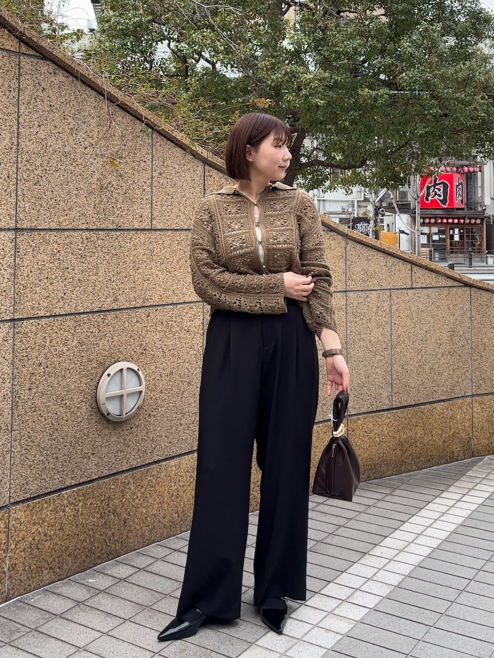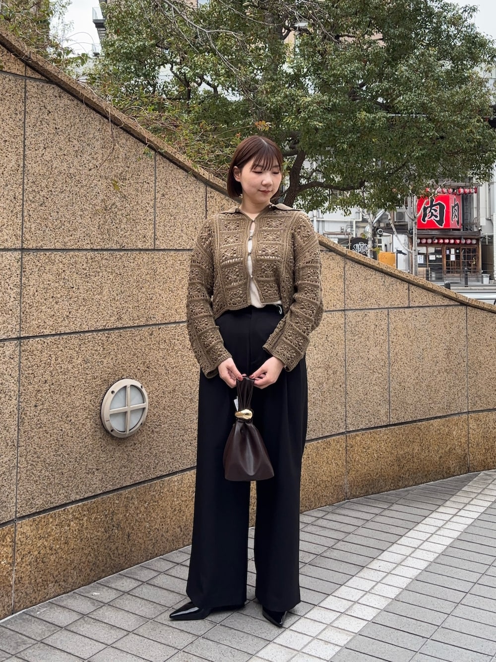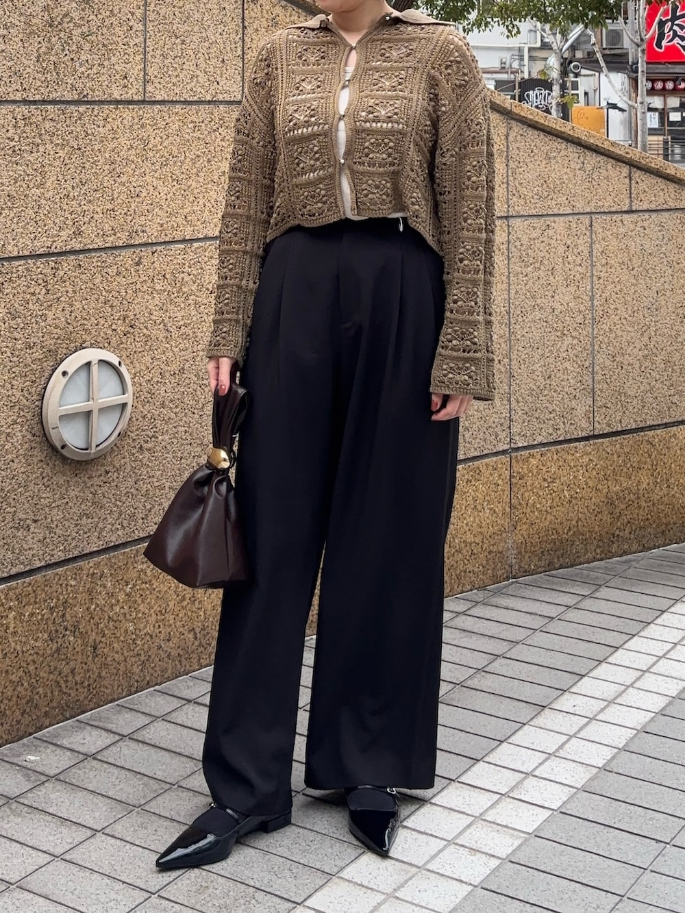カーディガンはレース編み風になっていてとても可愛いです🤍