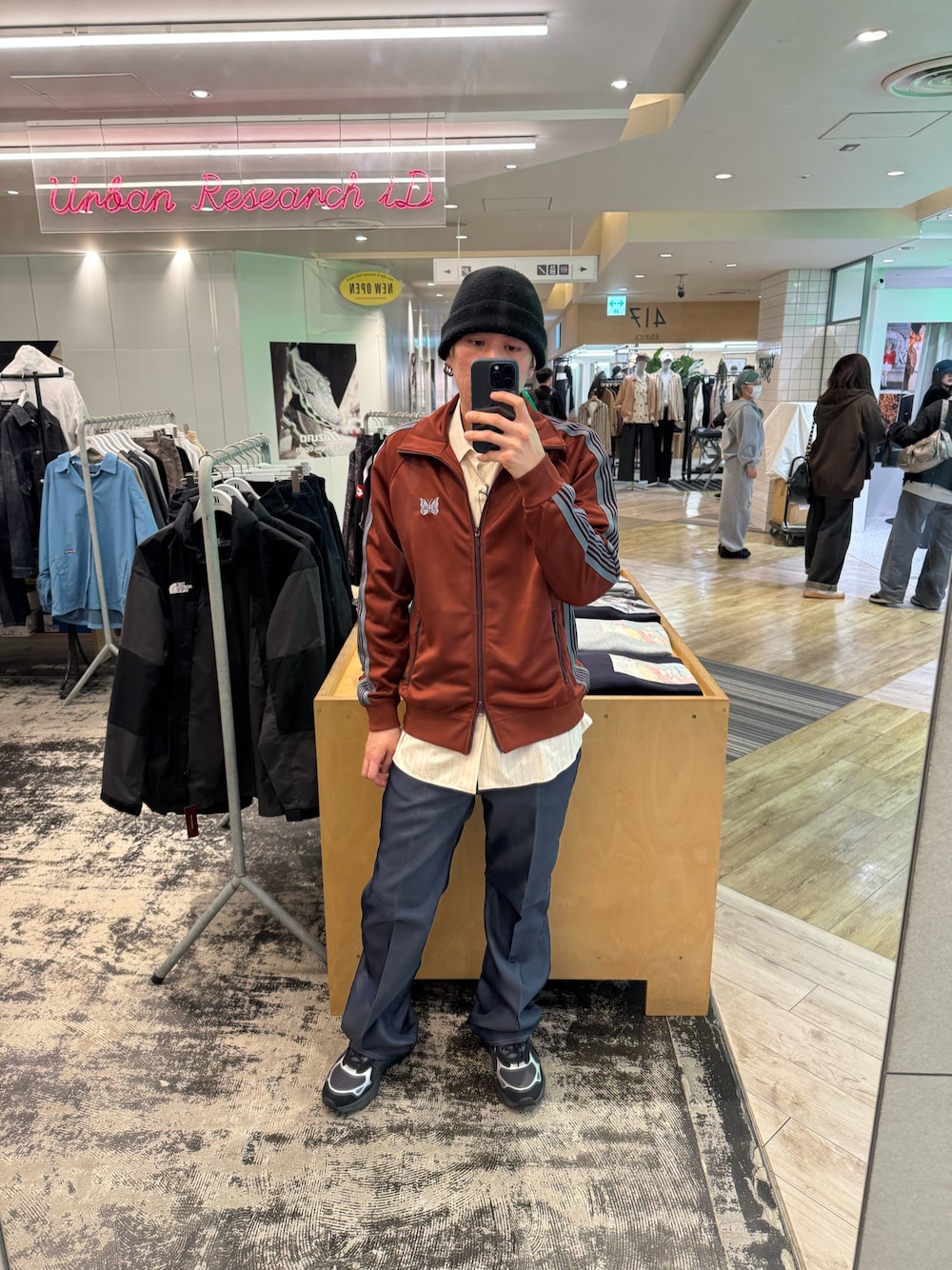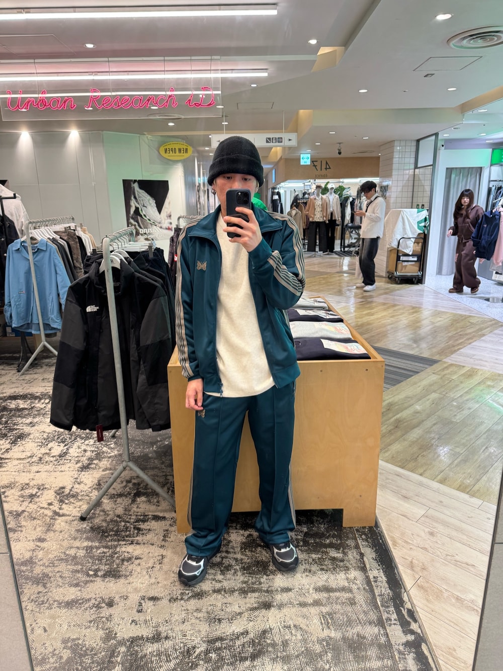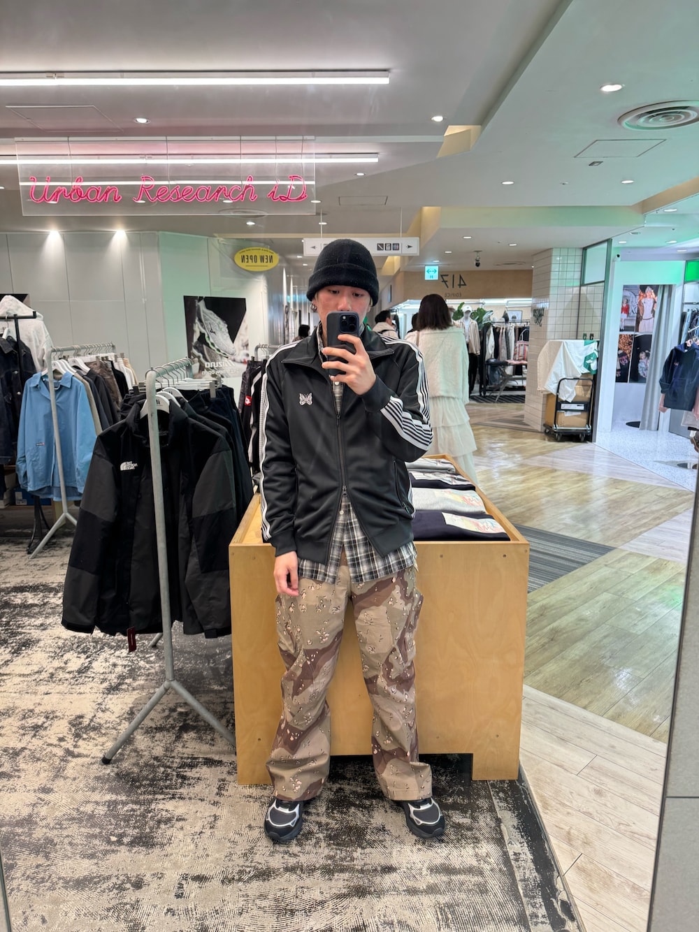 ナチュラルカラーがカモパンツと相性がよく、キレイめコーデの外しにぴったりです。