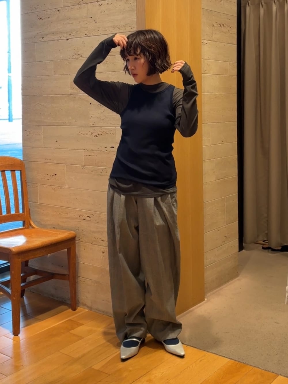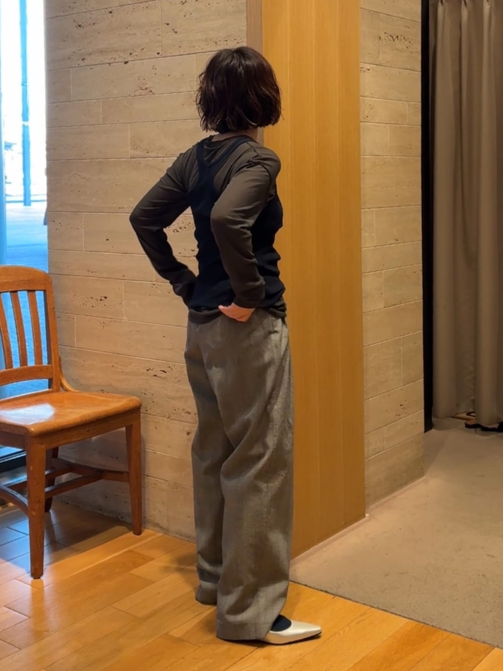 トップスがタイトなのでパンツは少しゆったりしたものを。。