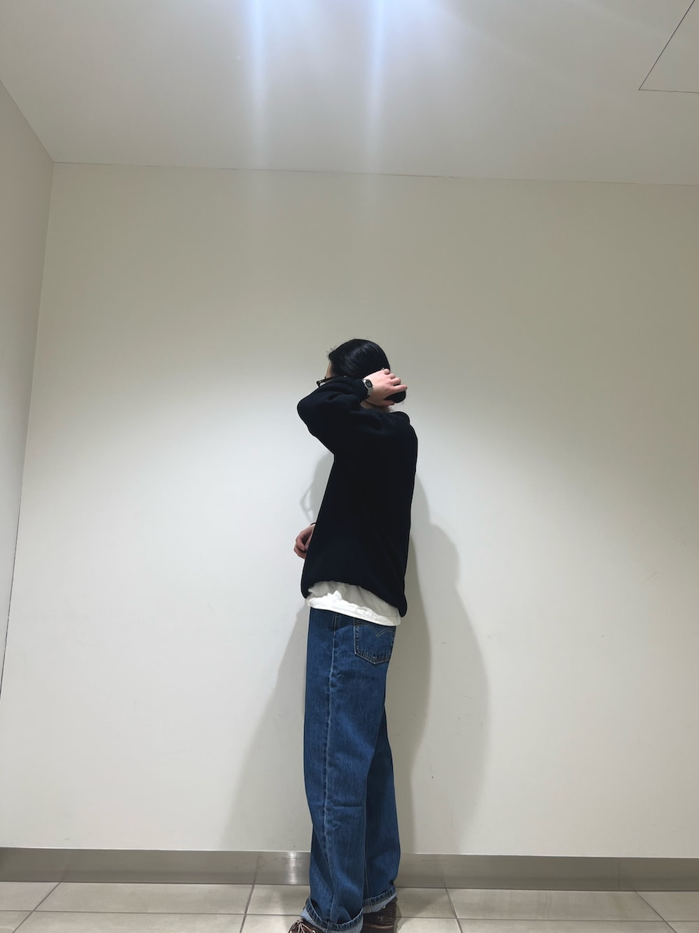 ウールなどのニットと違って素材感軽いので、暖かくなってくきた今時期でも見た目が重たくなりすぎず、使いやすいです。