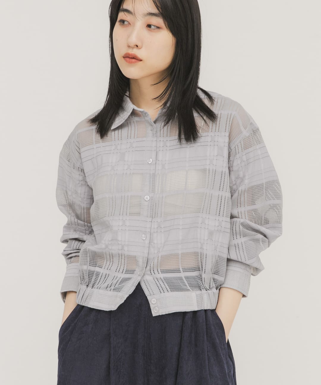軽やかなシアー感のあるチェックがポイントのシャツはコンパクトなサイズ感で、ワイドパンツとの相性バッチリです◎