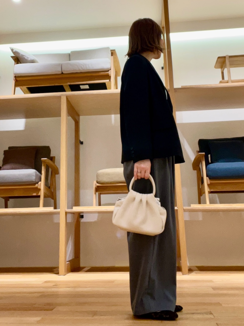 ジャケットはオーバーなシルエットで羽織りやすく軽いです‼︎オフィスカジュアルにも◉