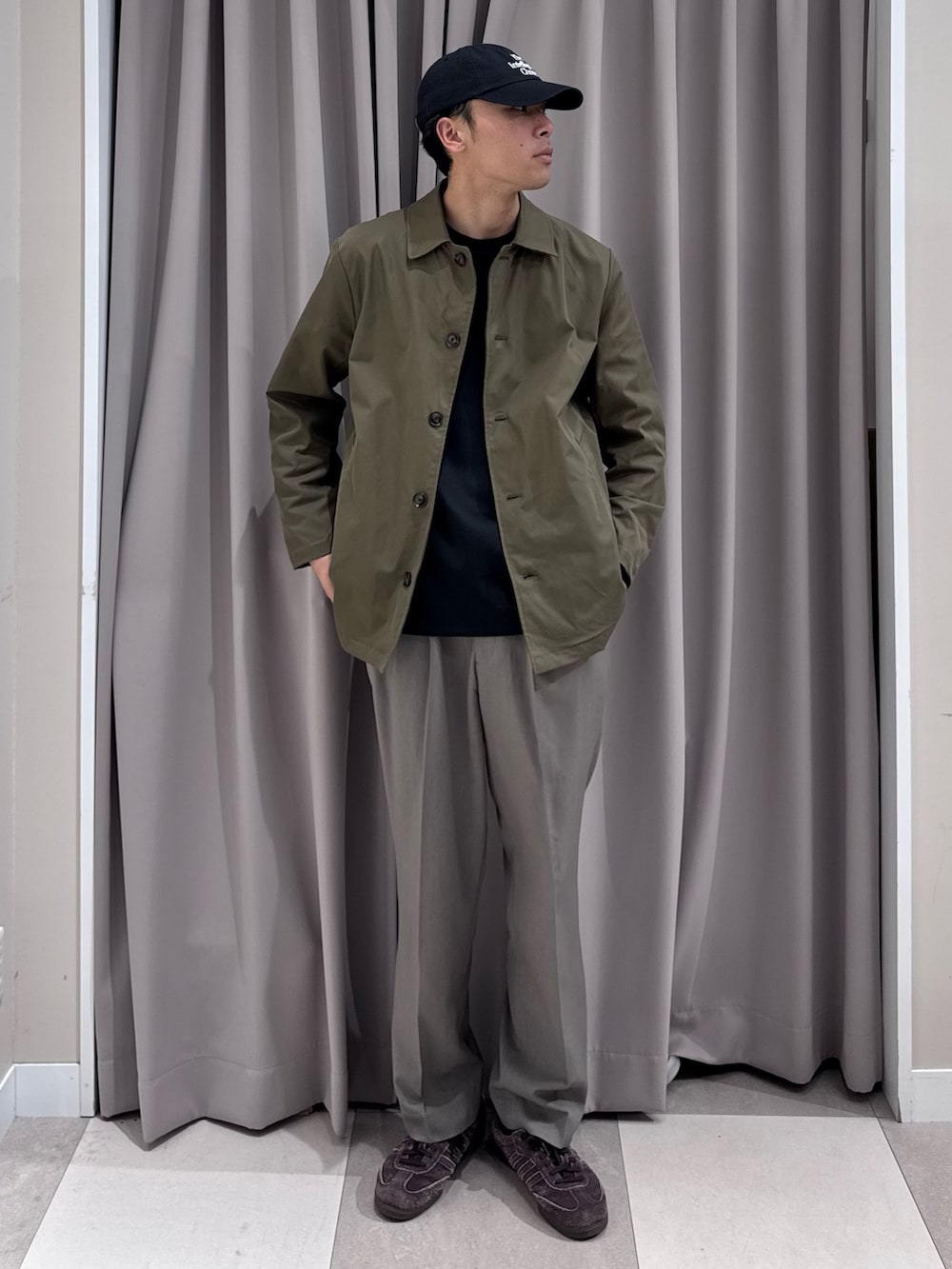 今回はインナーにスウェット合わせてカジュアル使いで。長過ぎないミドル丈なのもgoodポイント。