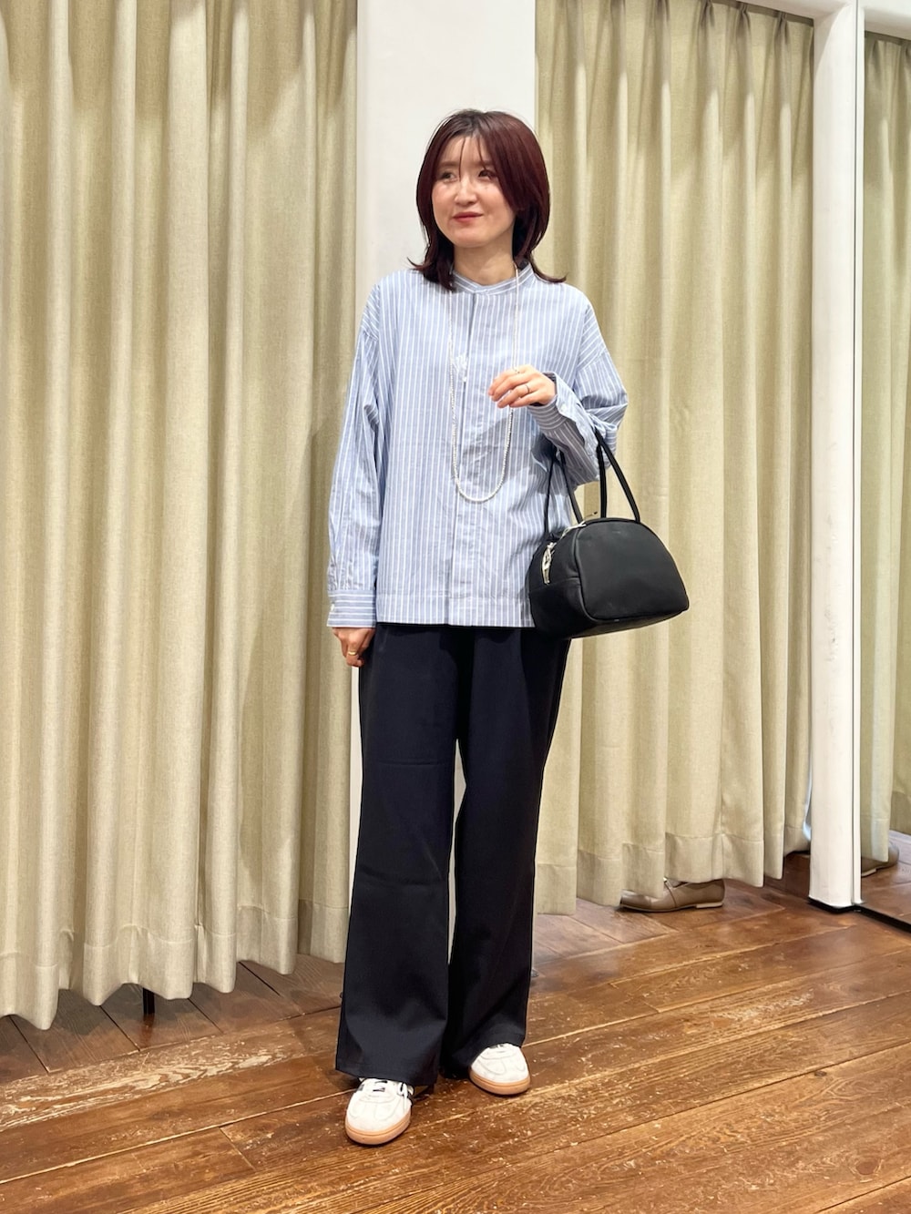 トップスはブルーベースのストライプでこれからの時期にぴったりです。