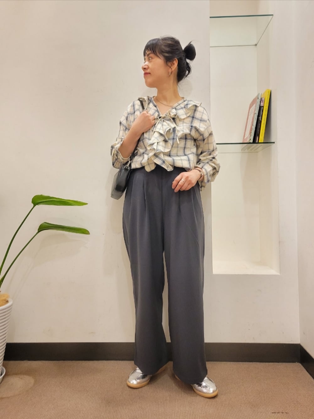 チェックフリルブラウス