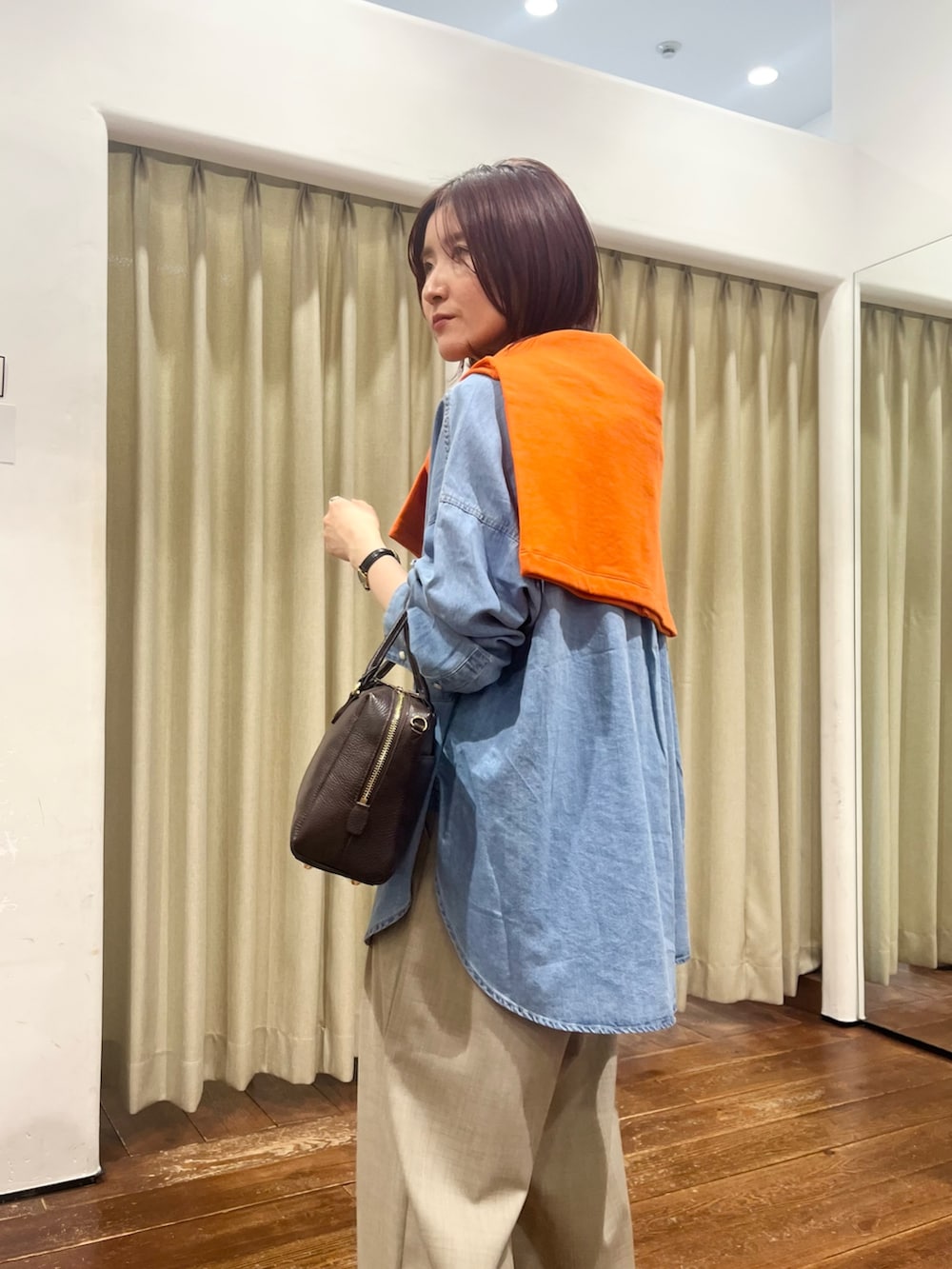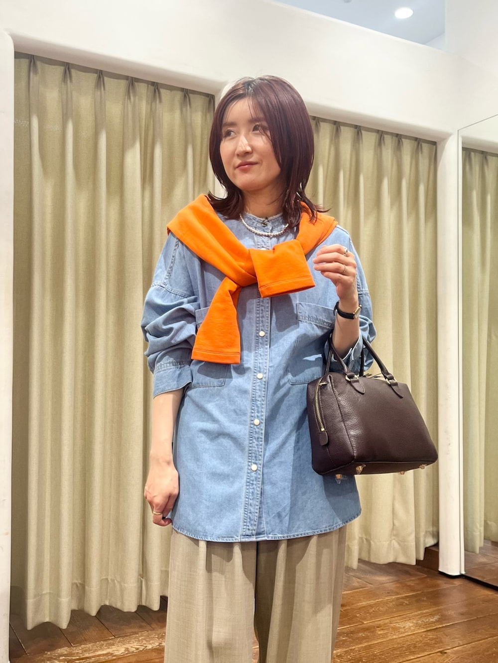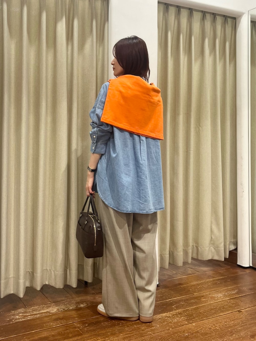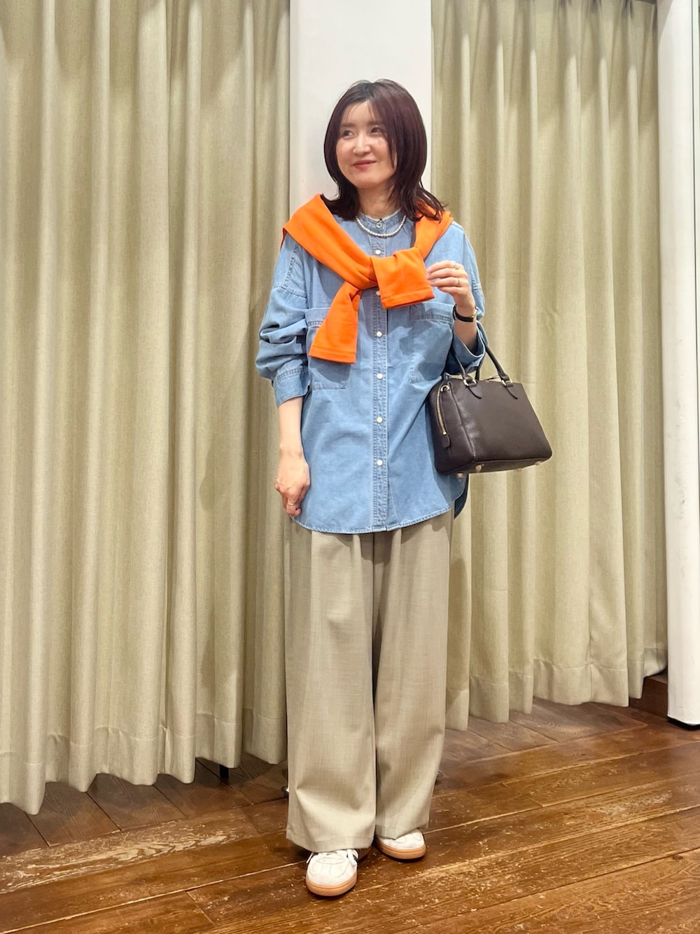 合わせたボトムはウエストがゴムになっていて履き心地もよいですが、シルエットも綺麗なのでおすすめです!156㎝で36サイズを着用しています。