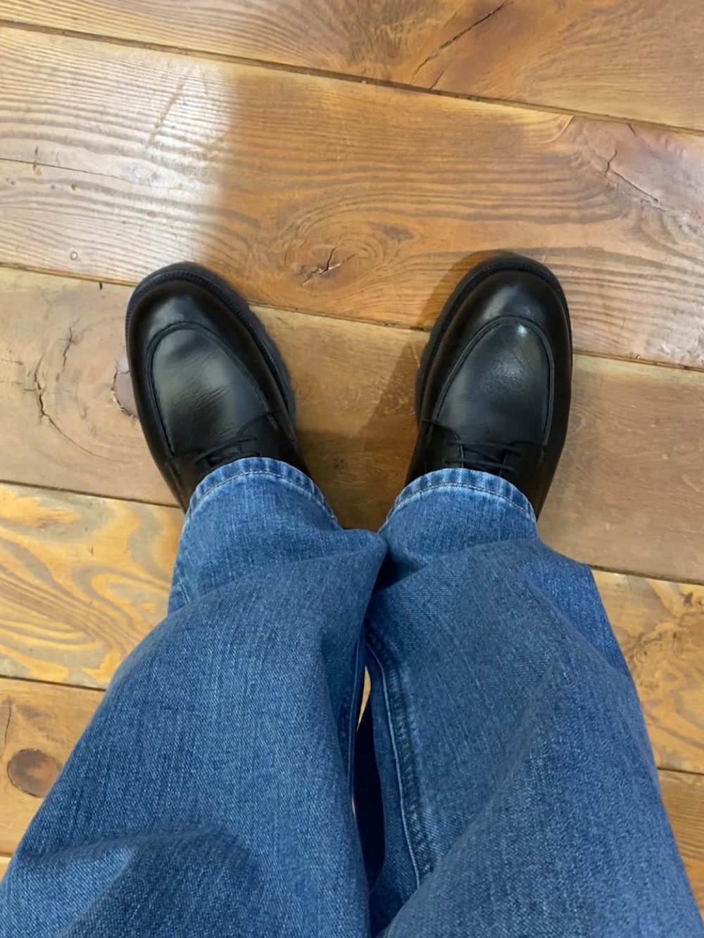 もちろん、デニムなどのカジュアルパンツと合わせてもかっこいいです!
