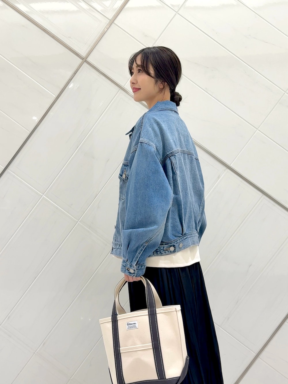 デニムジャケットは丸みのあるシルエットが可愛らしく、両サイドにポケットがあることで出し入れしやすくて嬉しいポイントです。