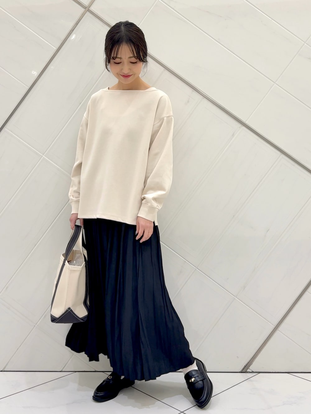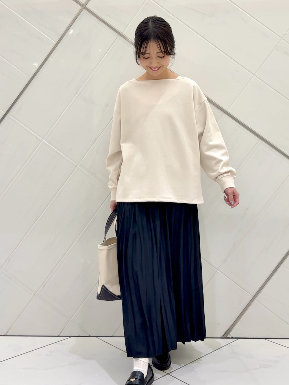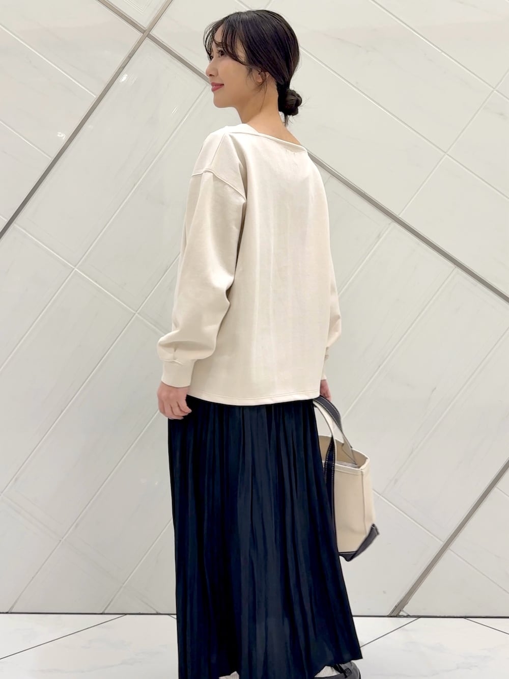 程よいゆとりがありながらも着膨れ感がなく、腰にかかるくらいの着丈なのでバランス良く着ていただけます。