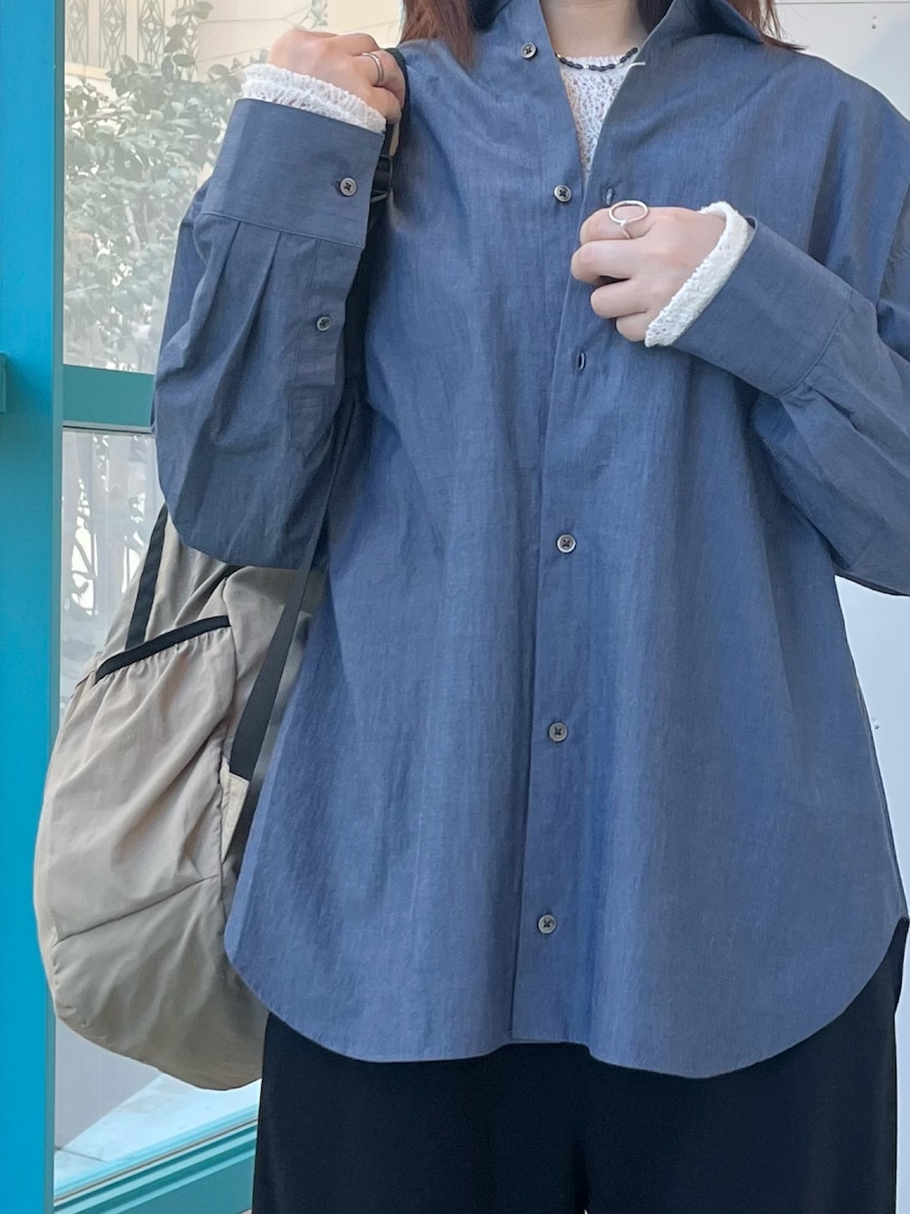 洗いざらしでも雰囲気が出る素材なので、ノーアイロンで着られるのも嬉しいポイントです。