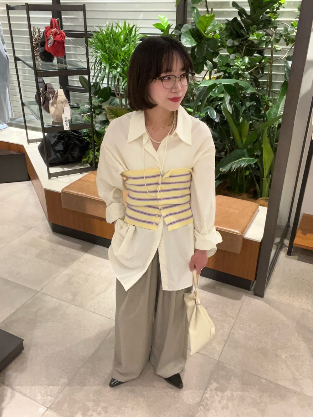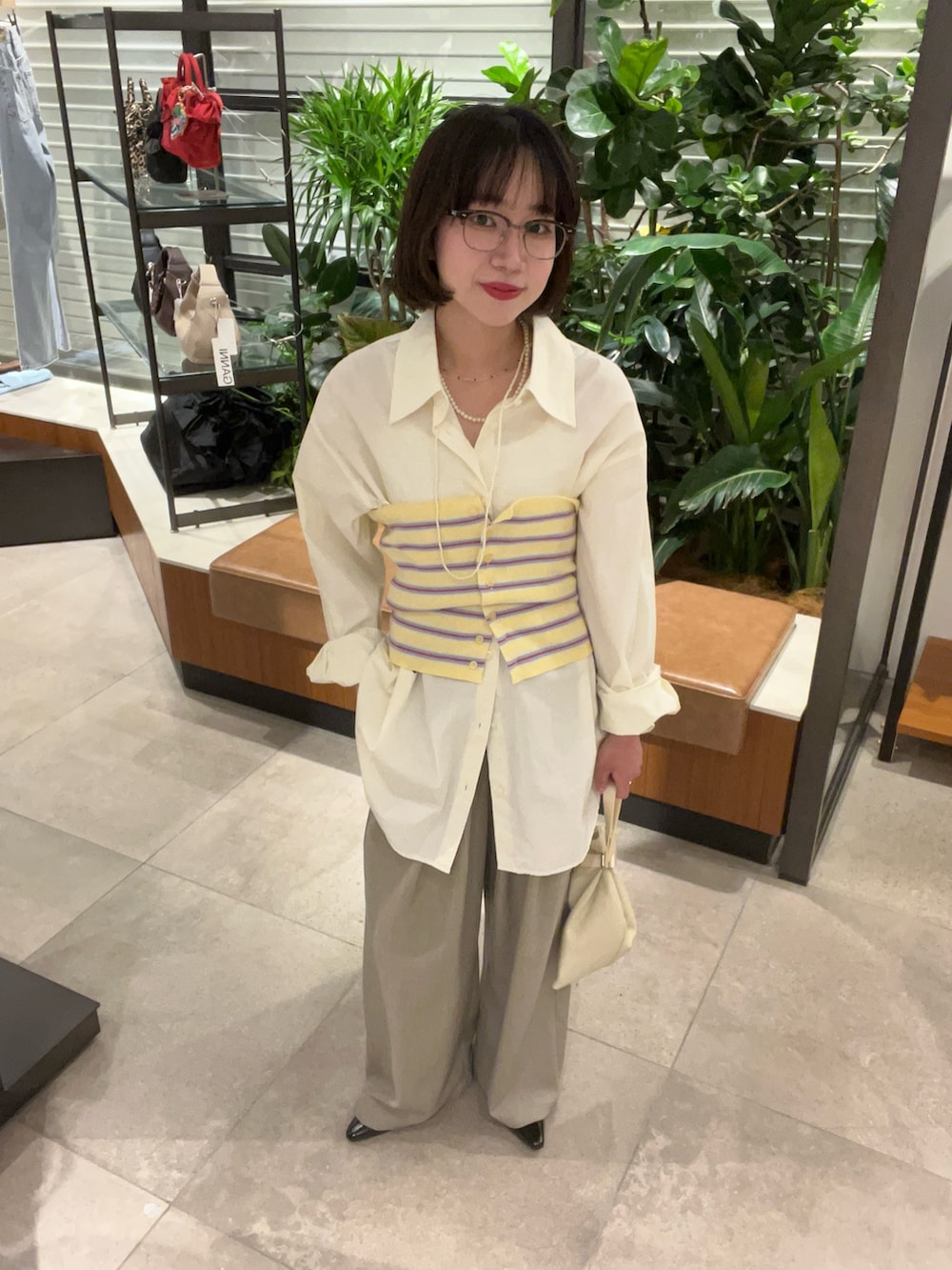 クリームカラーだけど少し黄色っぽくも見える春色シャツ💛🌼