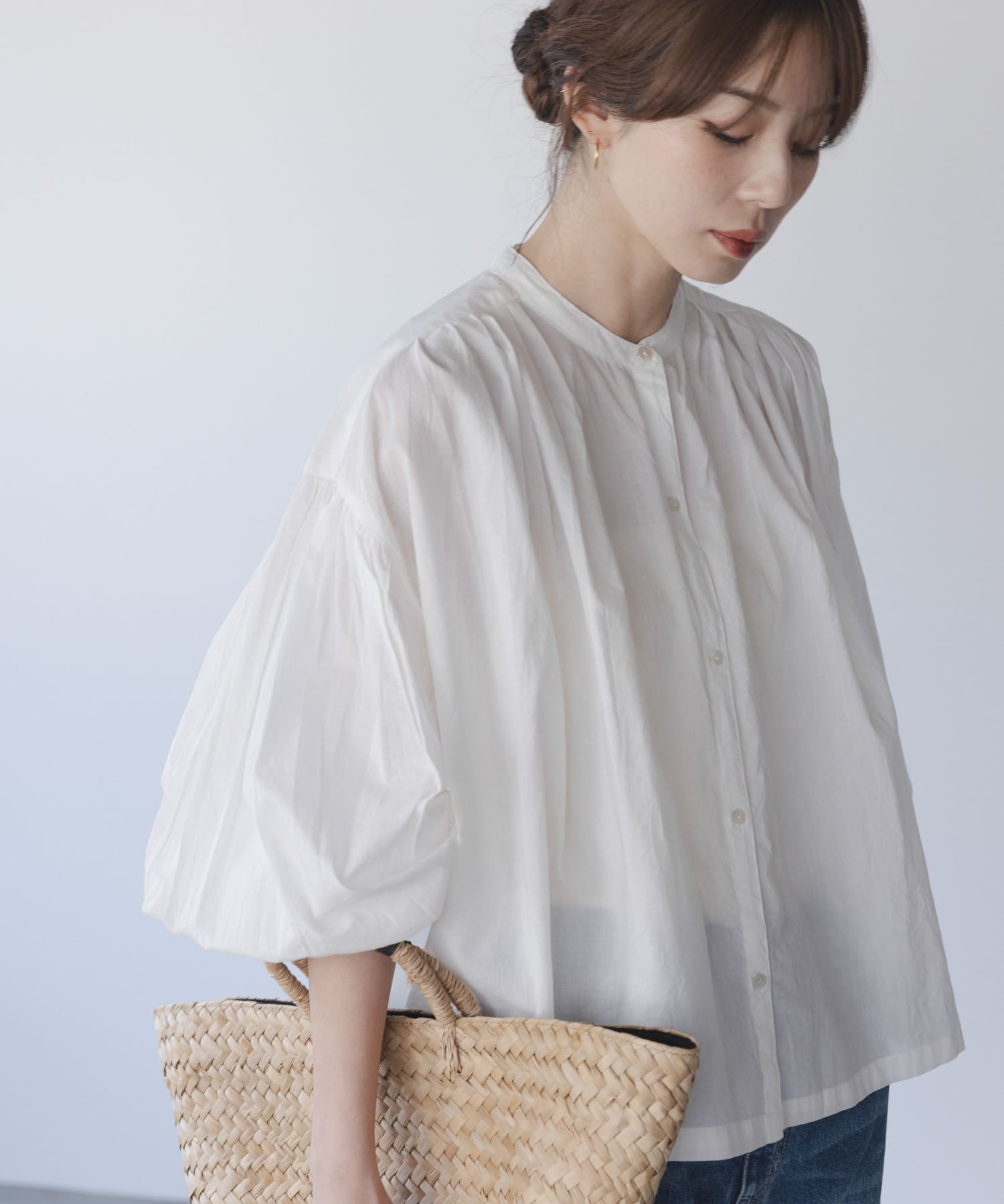 エアリーコットンタックボリュームブラウス