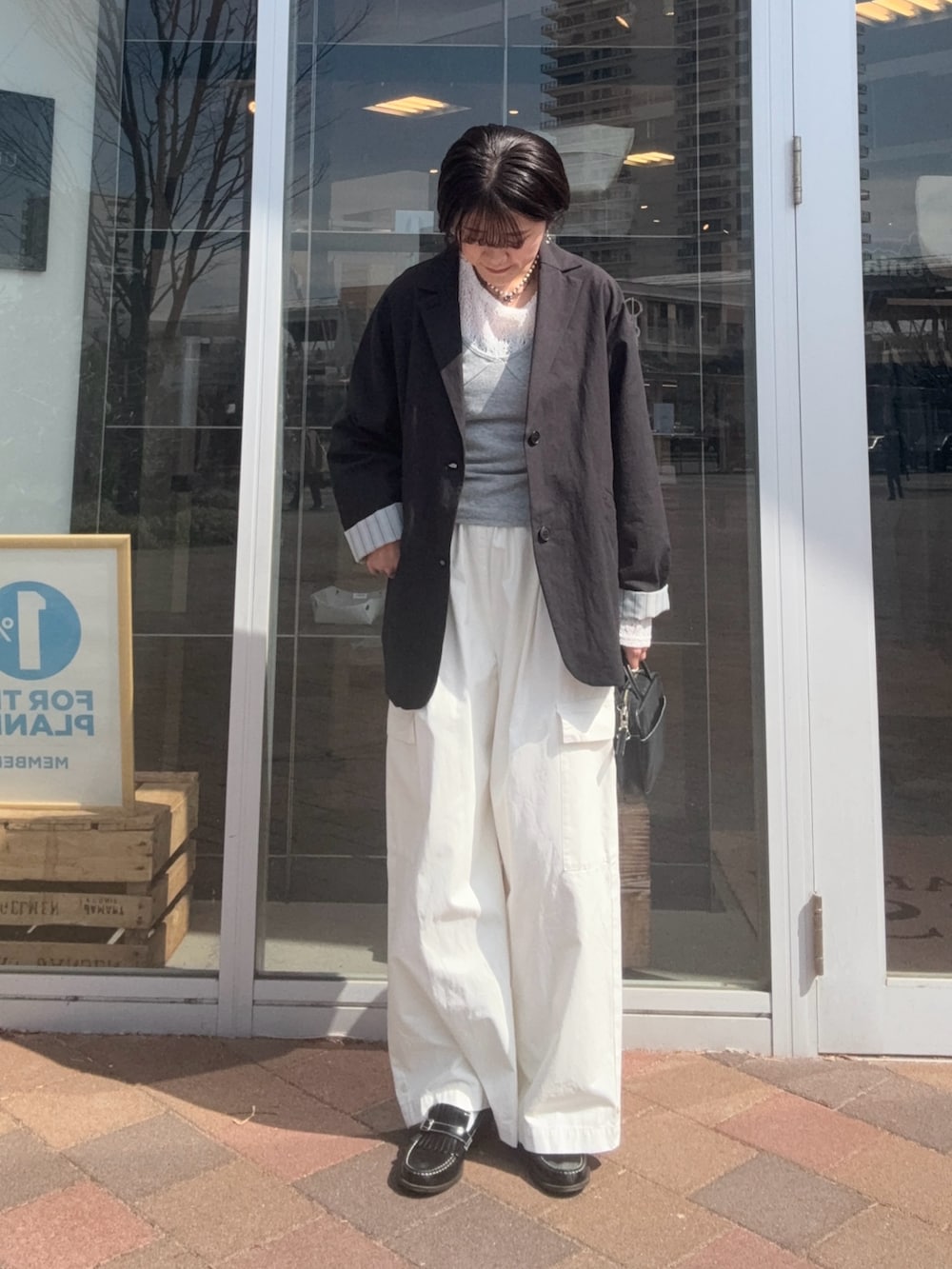 程よくキッチリ感のあるジャケットで大人ぽく着こなせます。