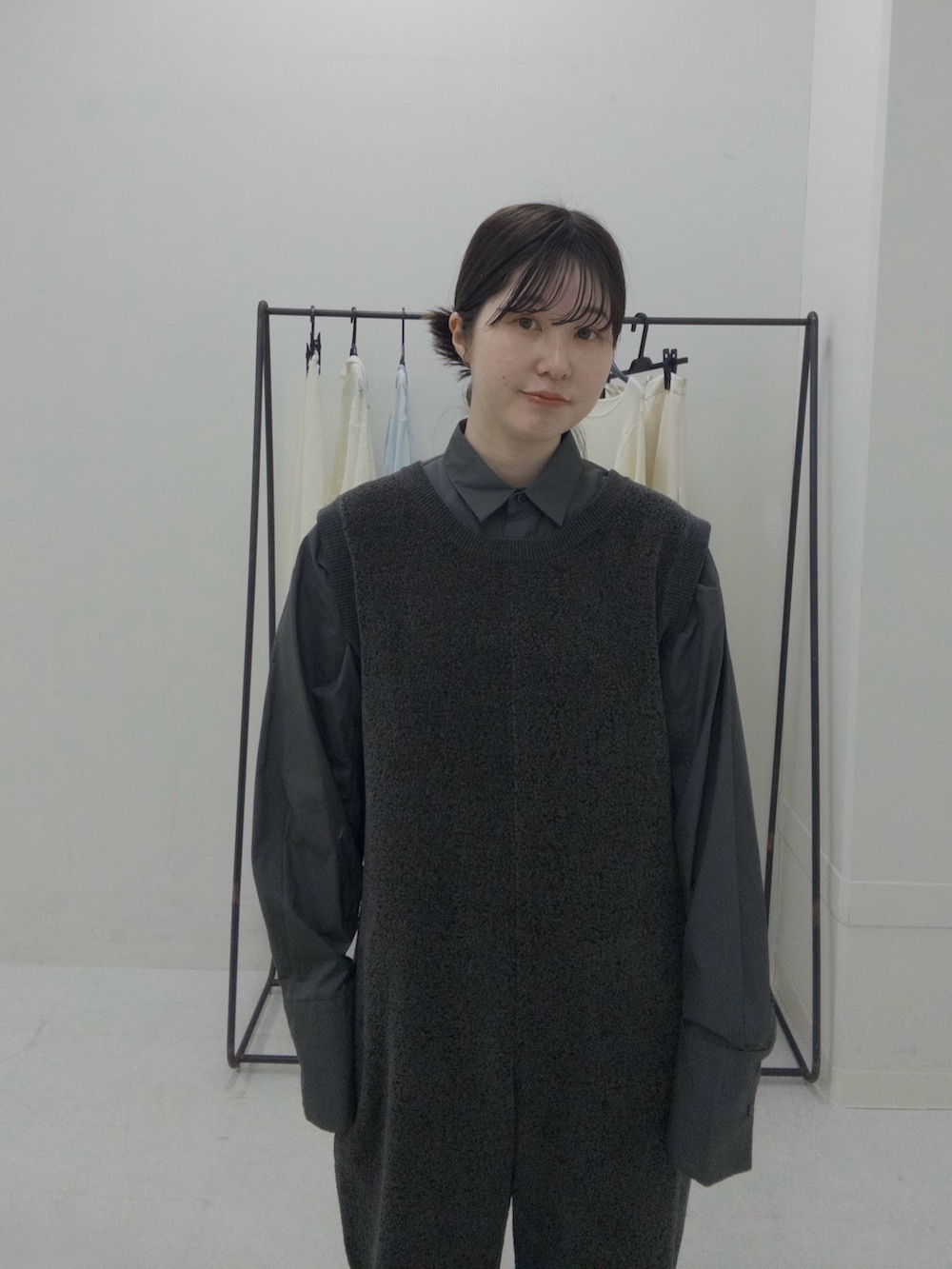 インナーにもグレー系のシャツを