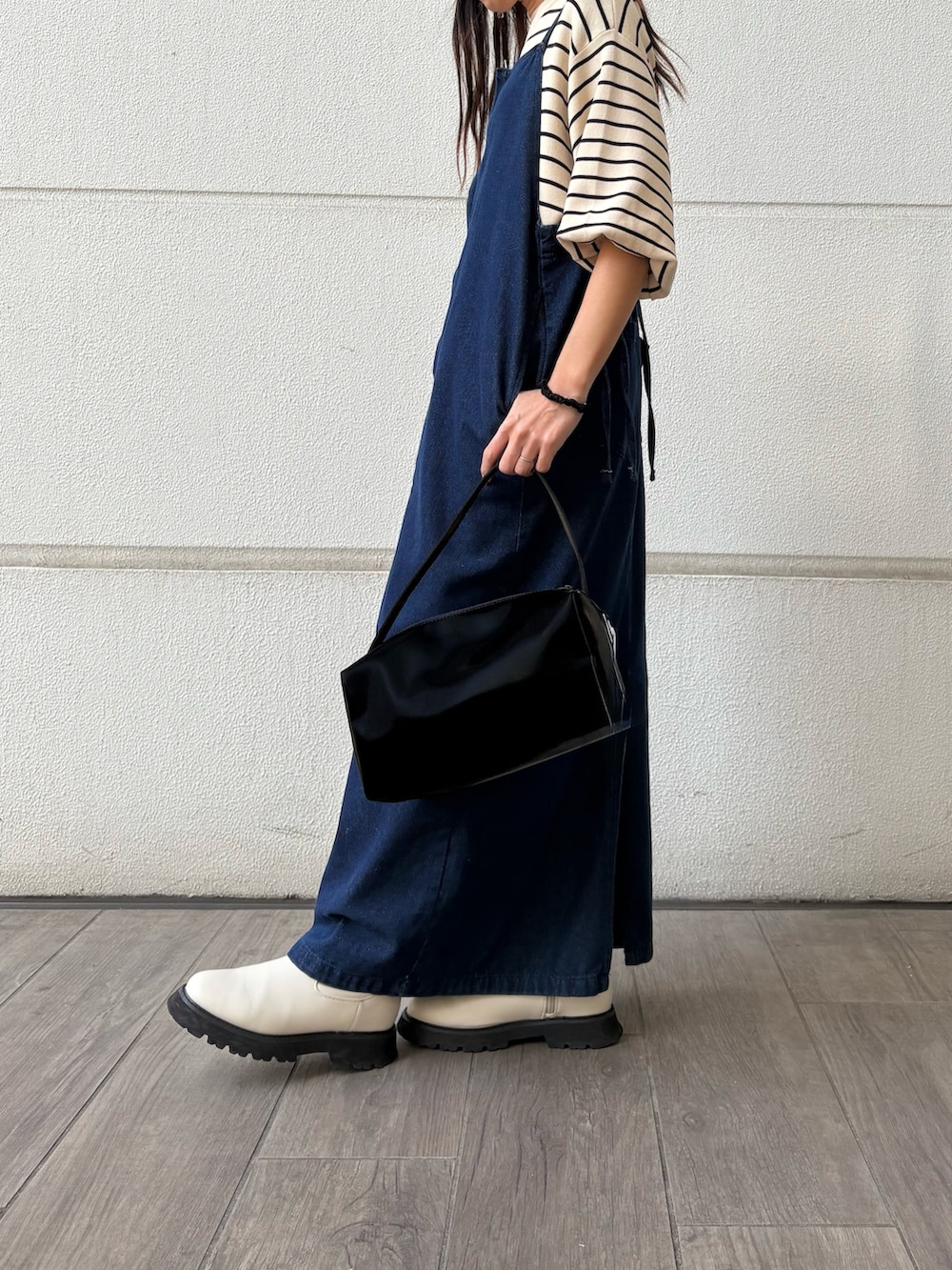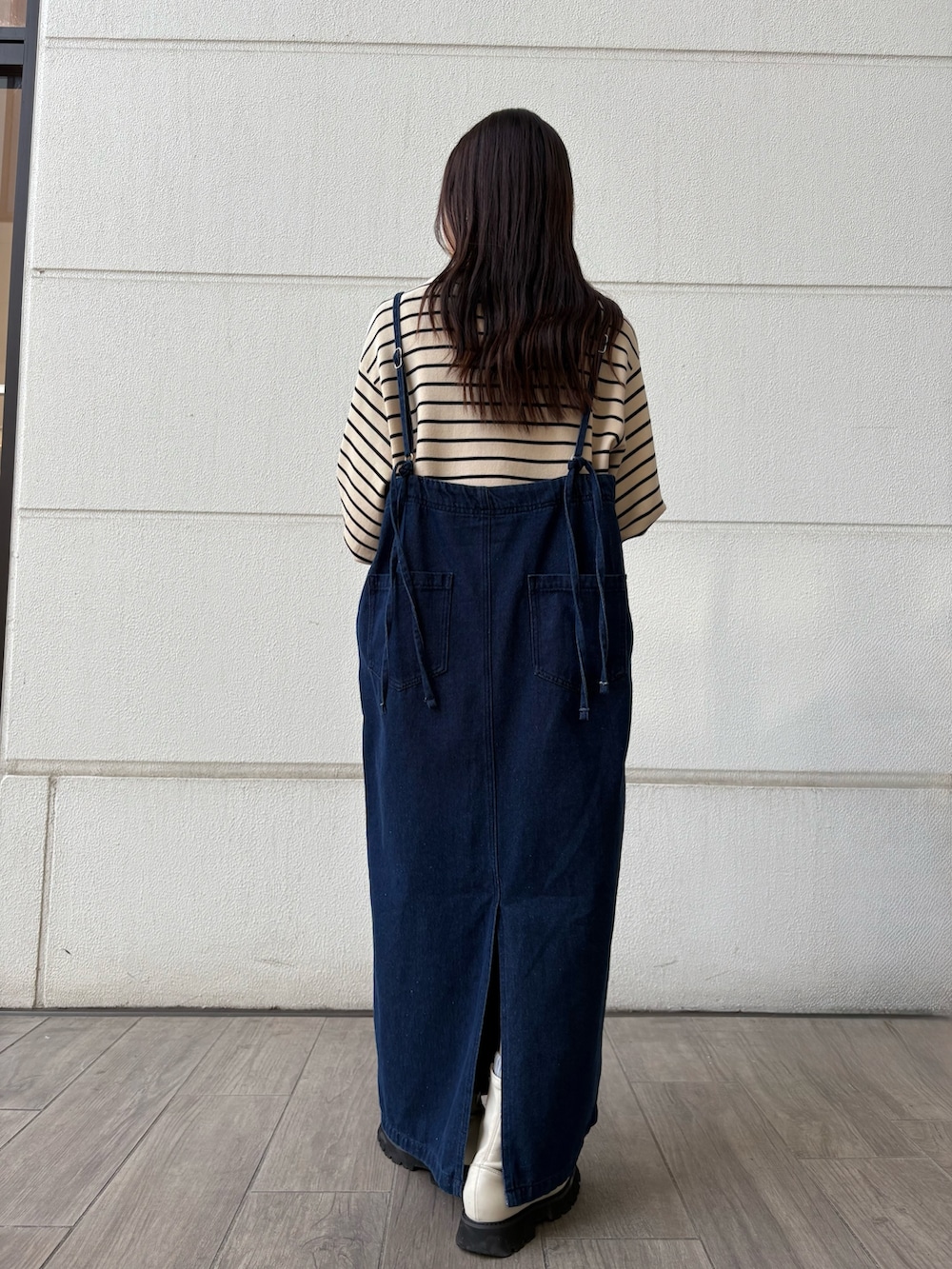 春らしいデニムワンピースと、ボーダーでカジュアルなお出かけコーディネートにしてみました🌷🌸