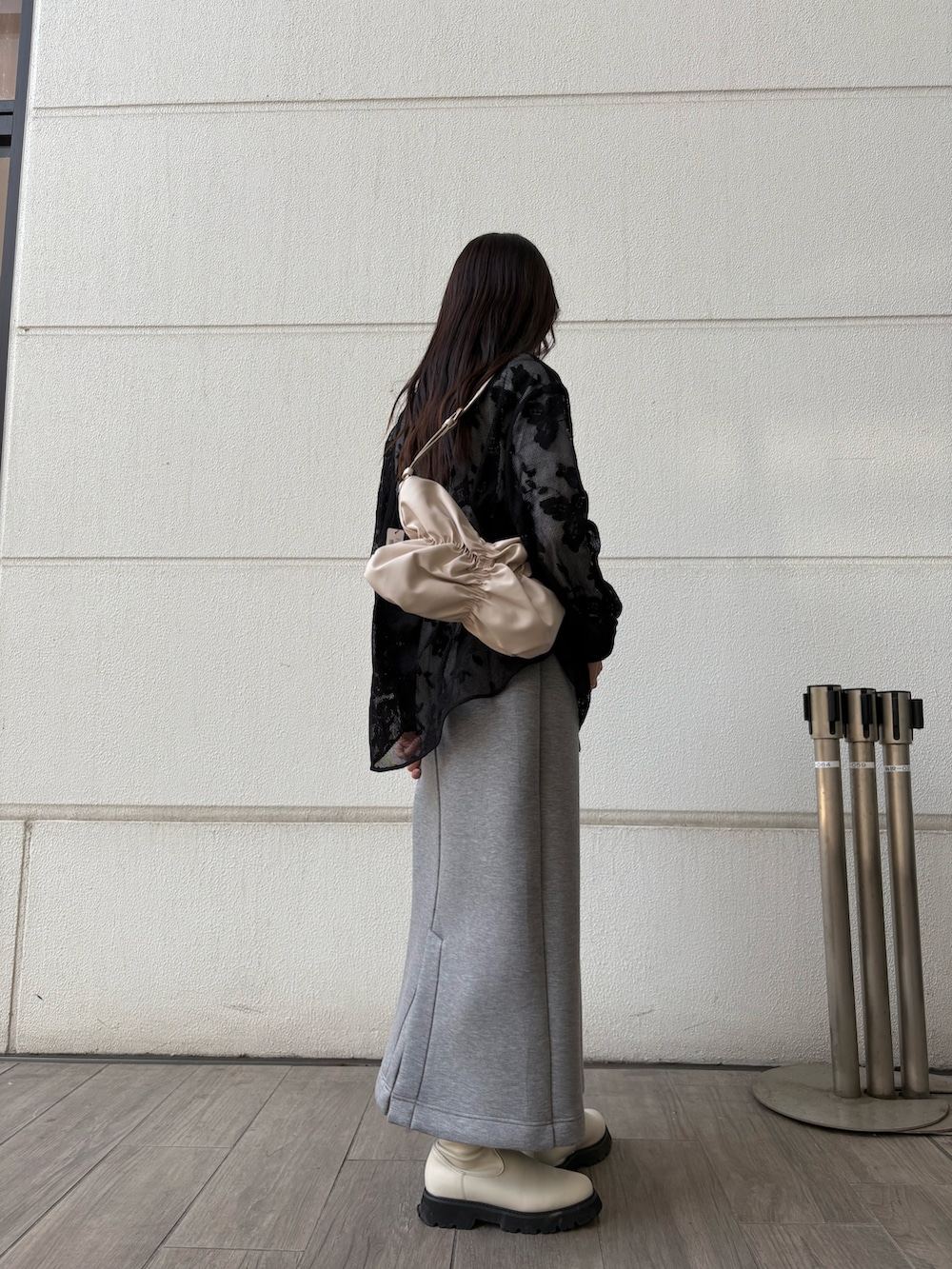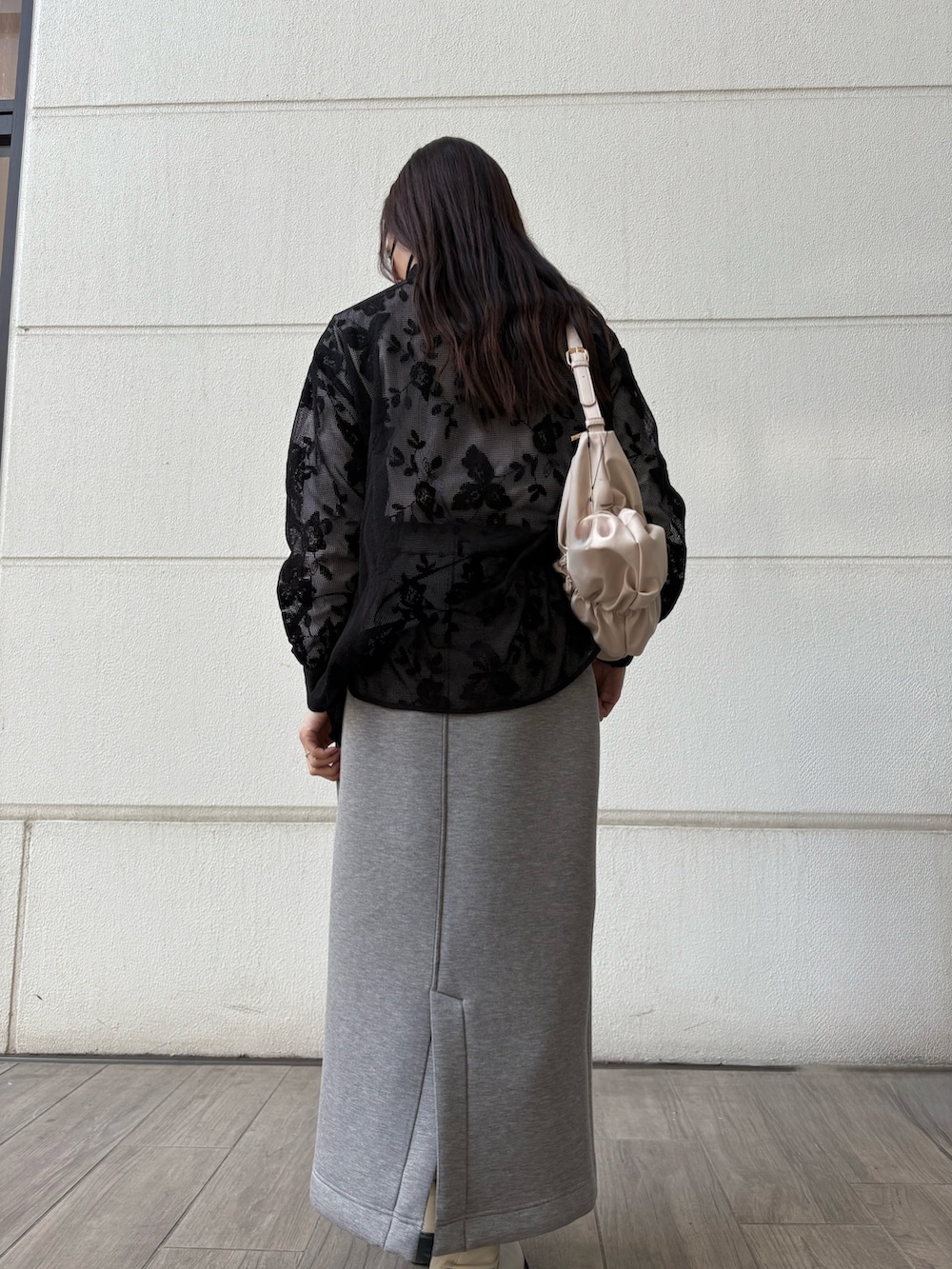 カジュアルなスウェットスカートに、きれいめレースのトップスで甘辛コーディネートにしてみました🤍🖤