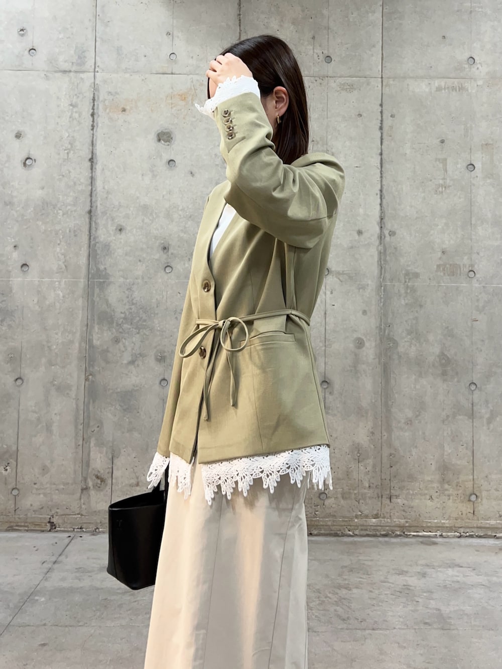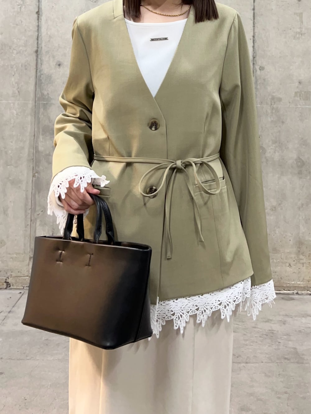 SENSE OF PLACEレースレイヤードノーカラージャケット- 着用カラー: