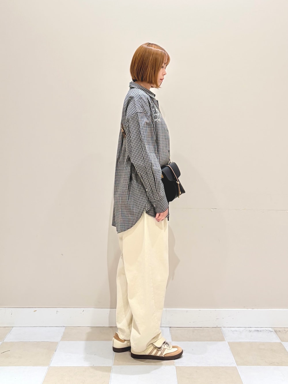 バレルレッグパンツとスニーカーで合わせました。