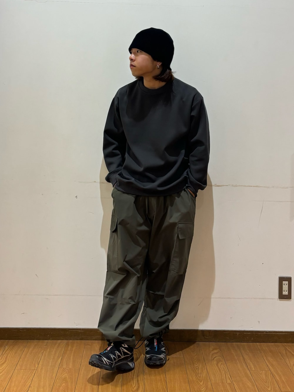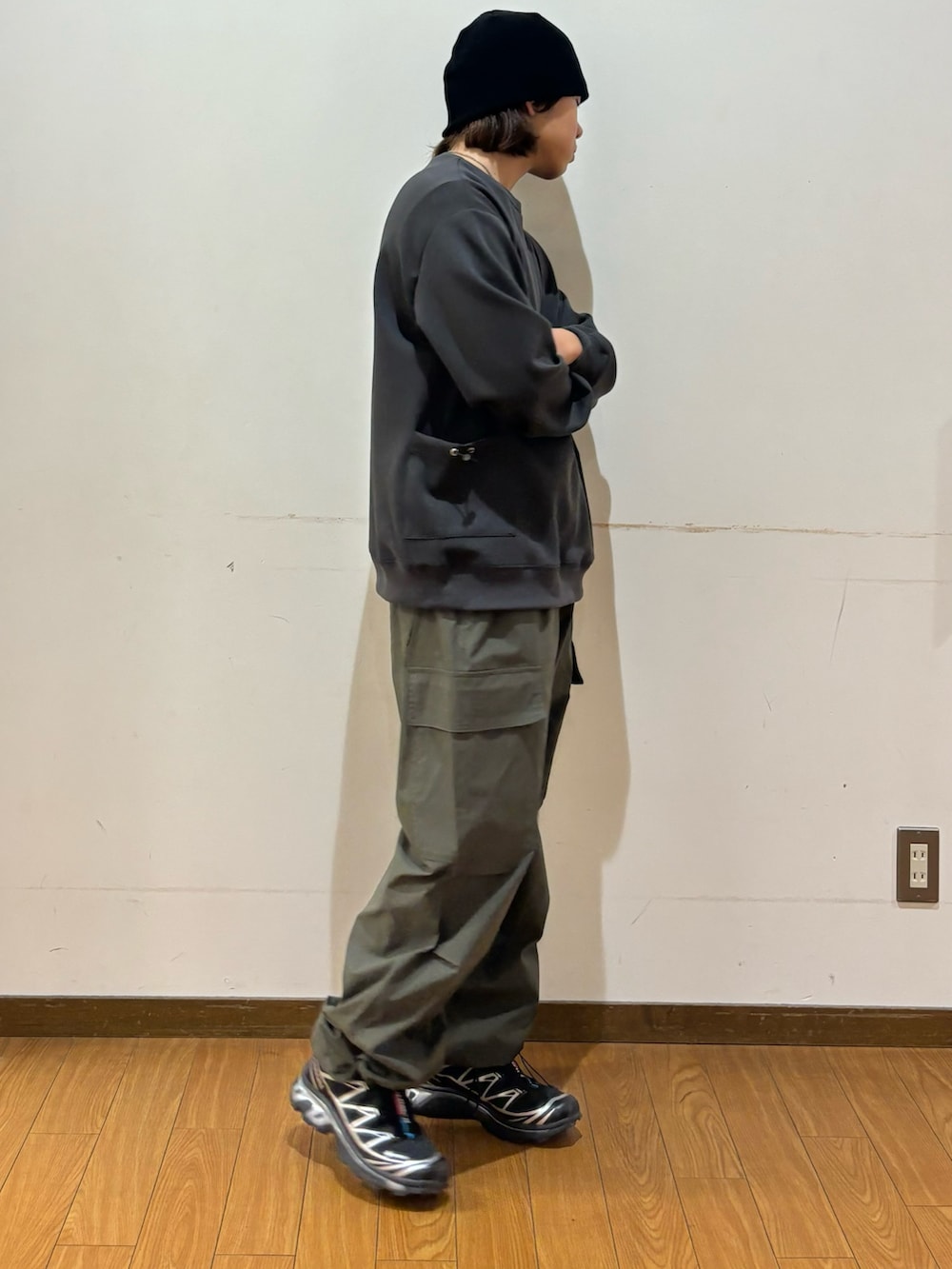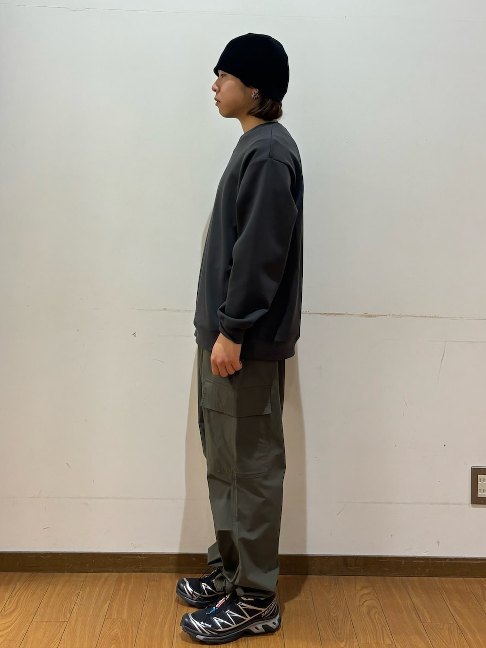 ボトムスのカーゴパンツは裾にドローコードが付いておりお好みで調節することができます!