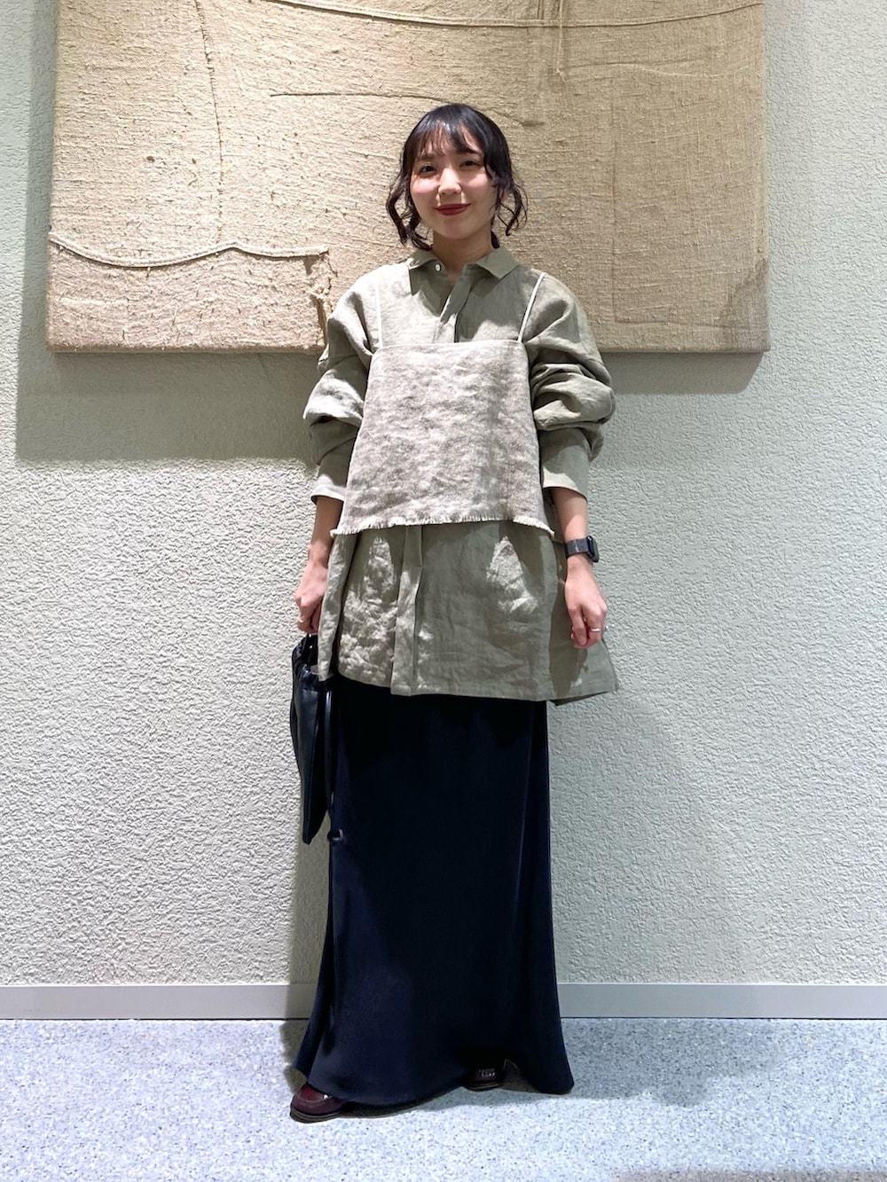 シワ感のある素材感で、アイロンいらずなのが助かります!