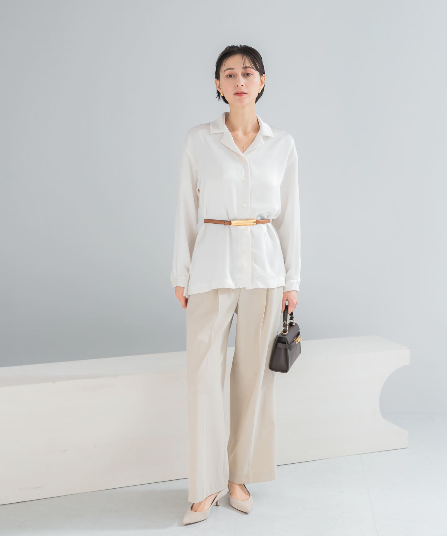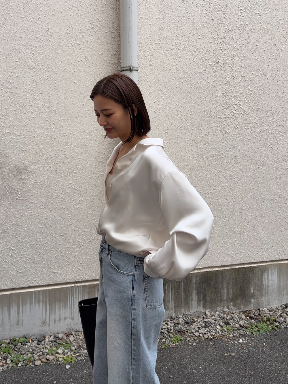 ROSSOオープンカラーヴィンテージシルキーサテンブラウス- カラー: