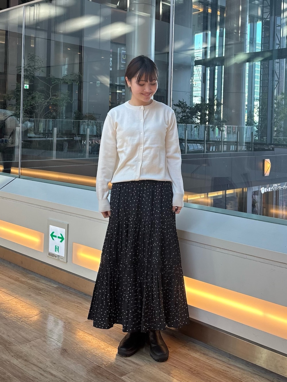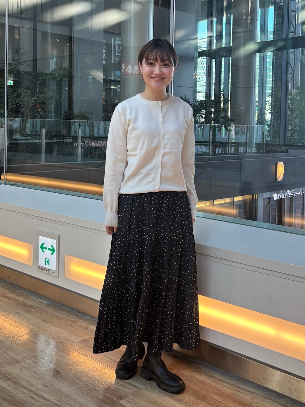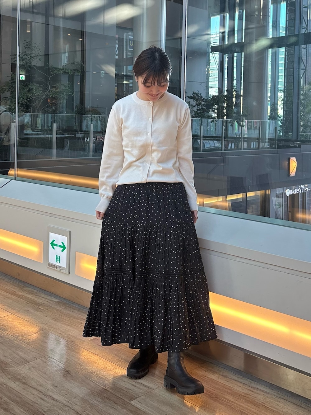 ティアードドットスカートはかわいくなりすぎないデザインなので、オフィスカジュアルにもデートにも使えるアイテムです!