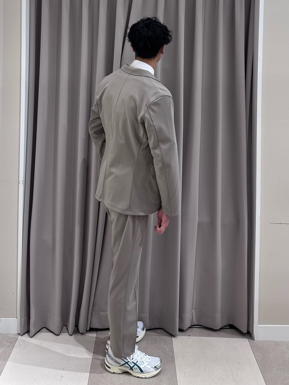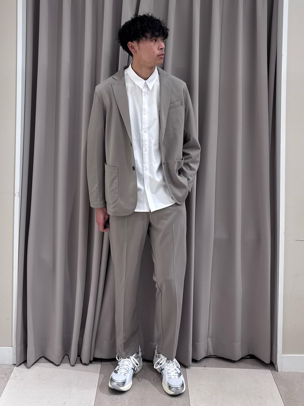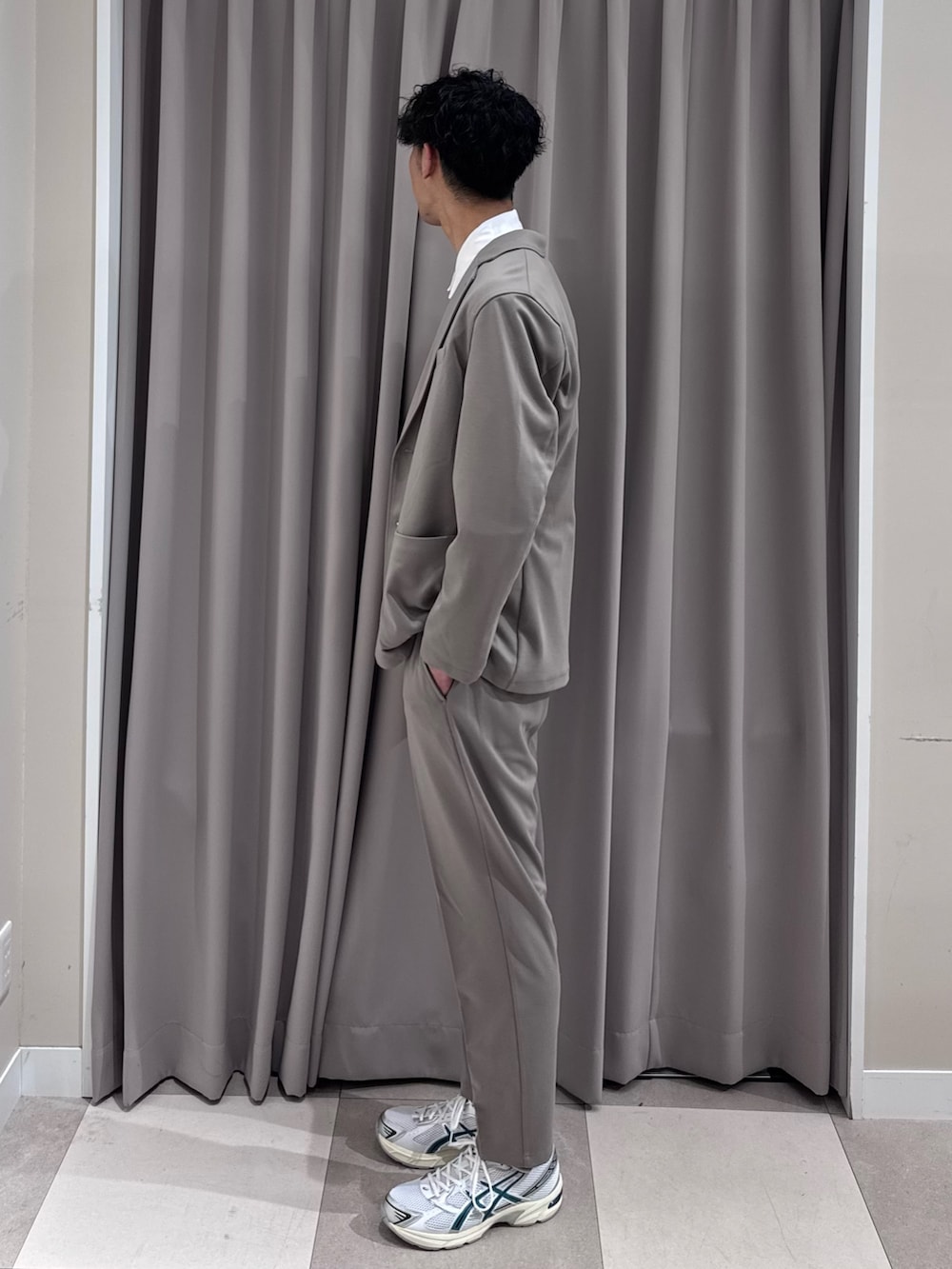 今回はラフなカジュアルセットアップ。細身のフォーマルなスーツではなく、少し緩さのあるカジュアルジャケット&スラックス。