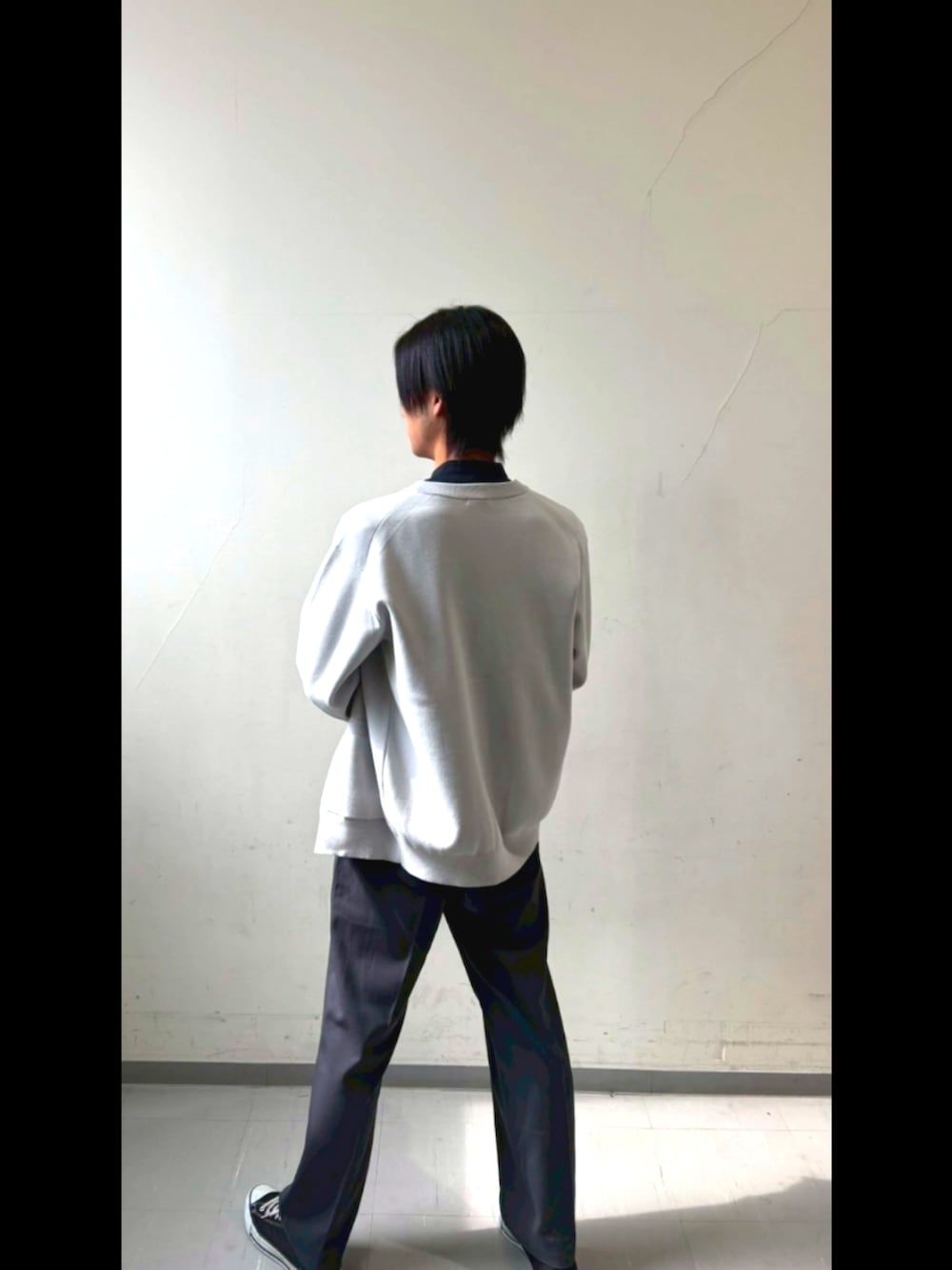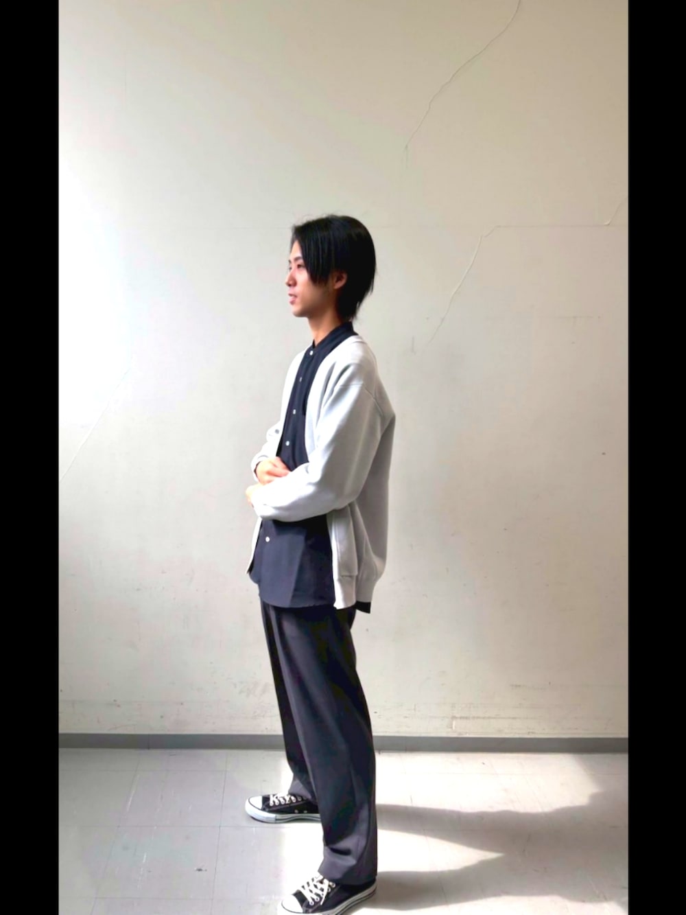 涼し気な寒色ベースをあえて白系のカーディガンで引き締め。シンプルだけど少し差別化。
