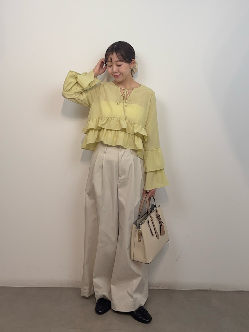 ライムグリーンの主役ブラウスが可愛いっ🥰
