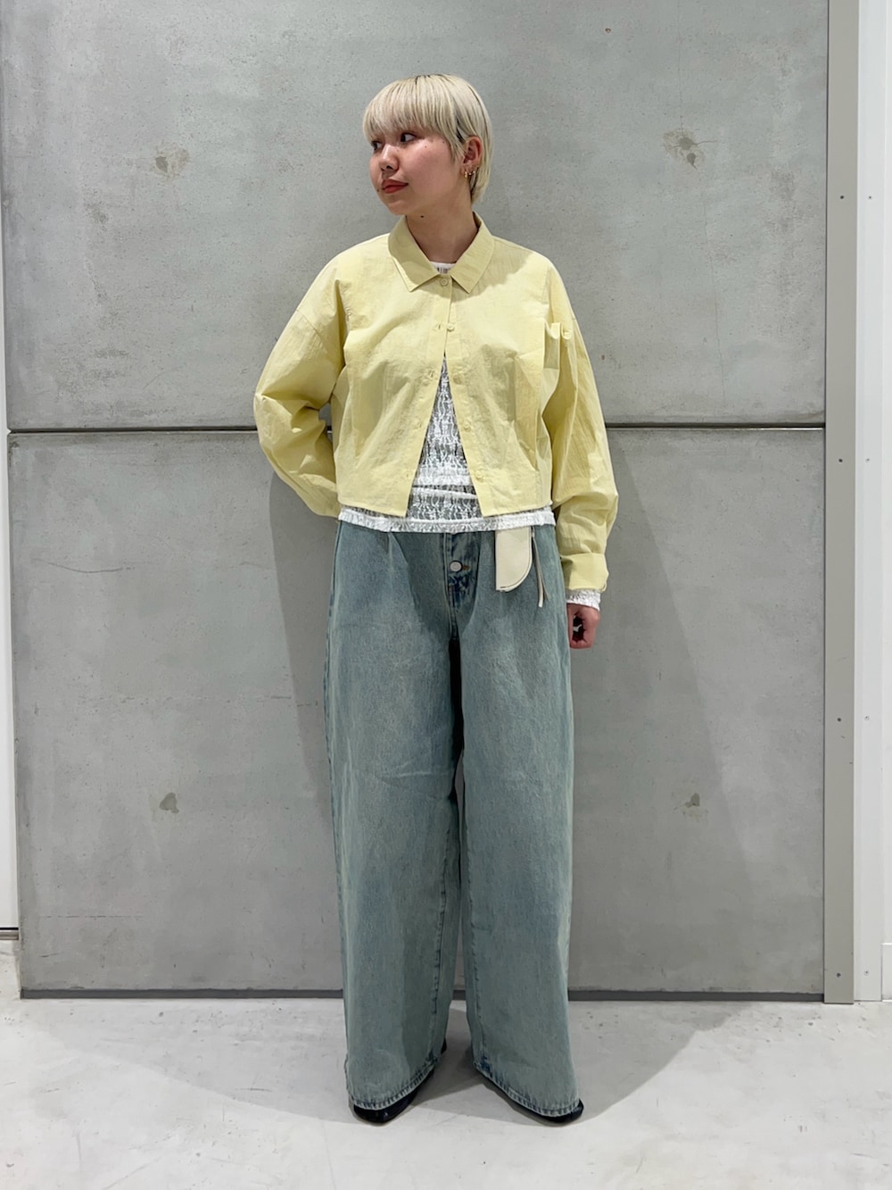 トップスは、KBFのタックへムクロップドシャツを着用しています!