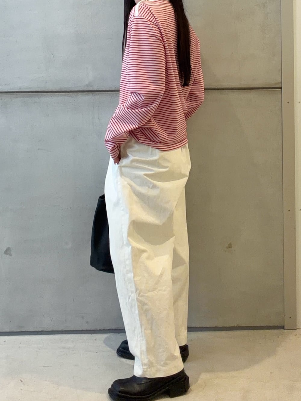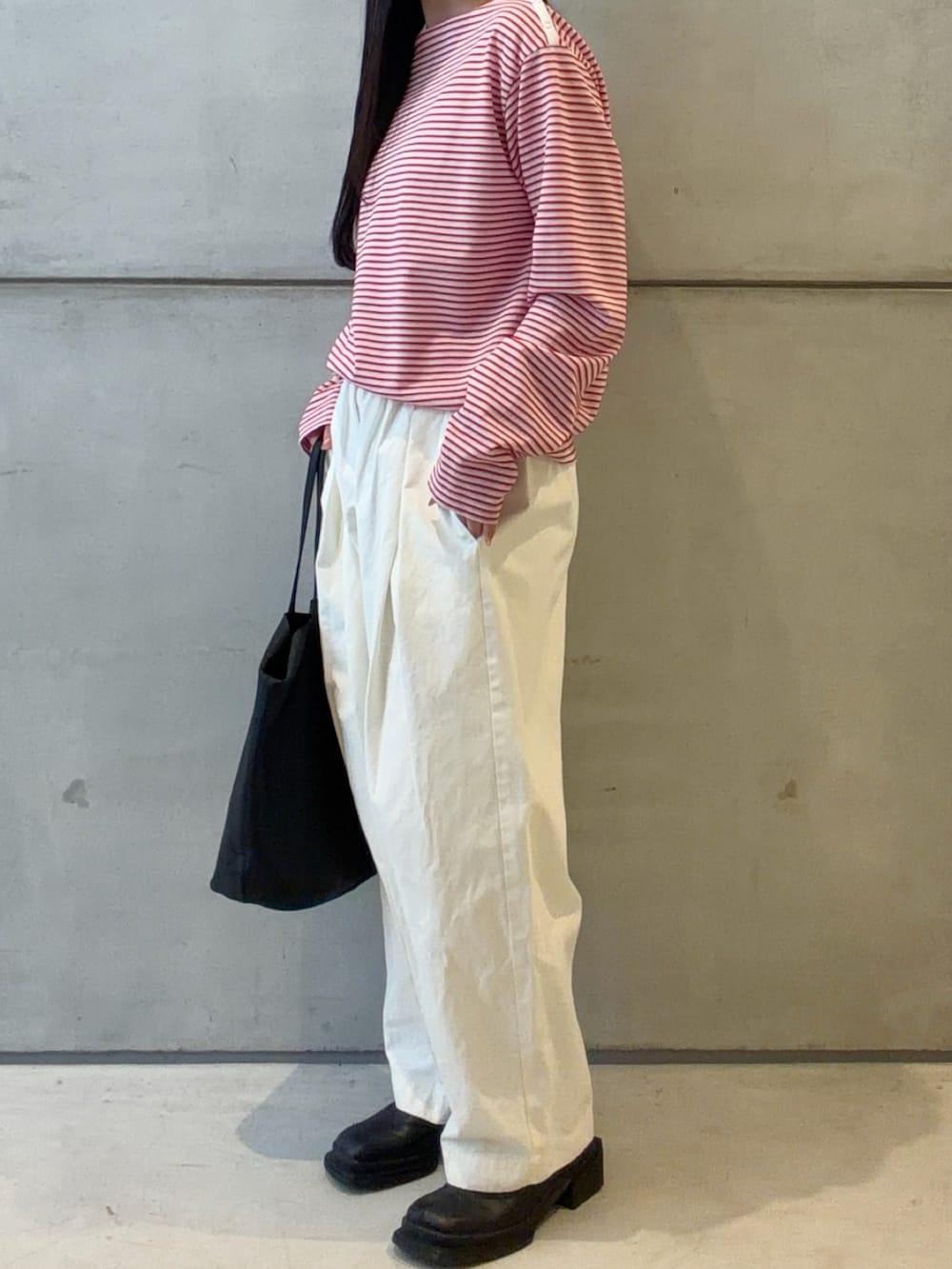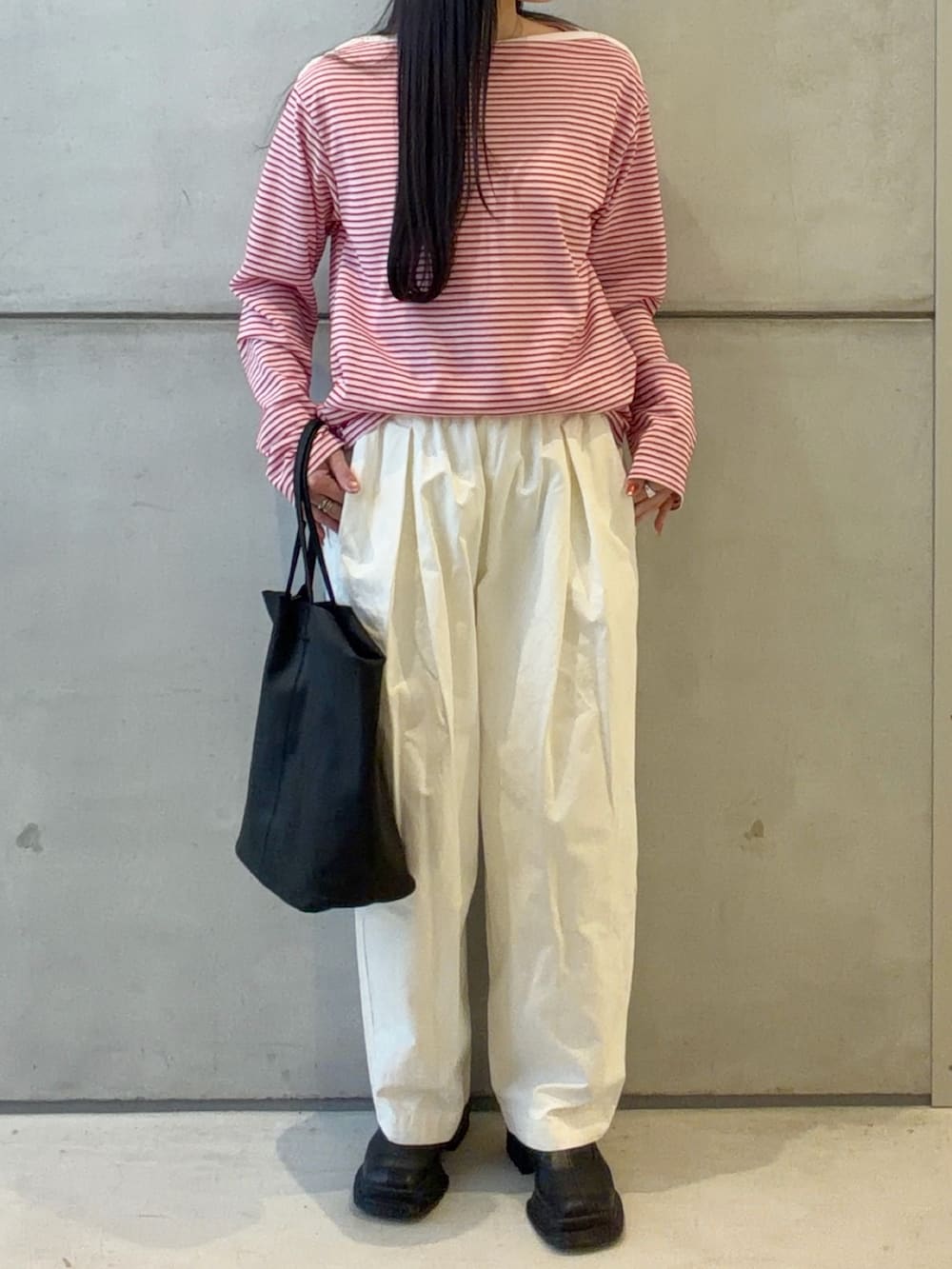 ボーダーのロンTは個人的にカジュアル且つ可愛くなってしまう印象があって苦手でしたが、こちらのトップスは首元の空き具合が綺麗目で女性らしさをしっかり出せる形なので、綺麗目に合わせたい方におすすめなボーダートップスです✨