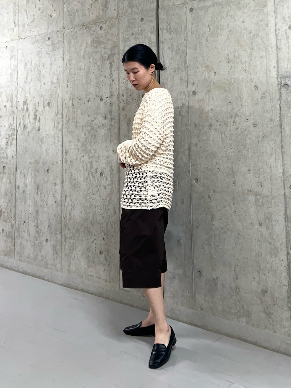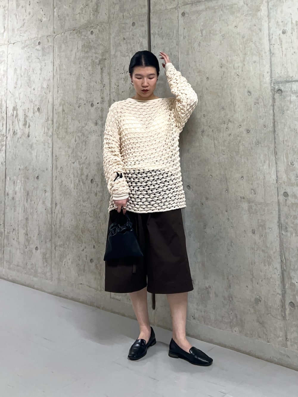 サマーニット素材で軽やかな雰囲気なので、今はロンTなどと合わせて、暖かくなったらキャミ合わせで長く着ていただけます◎