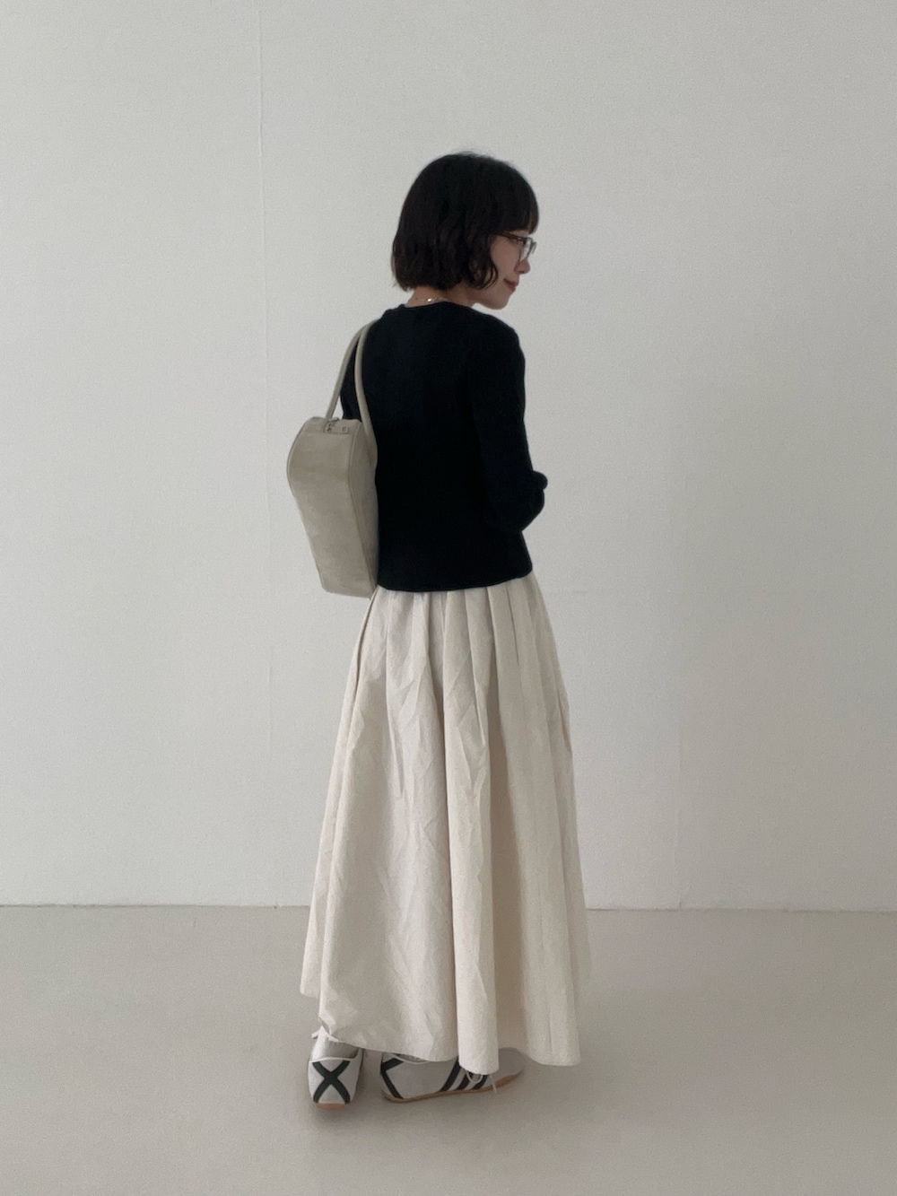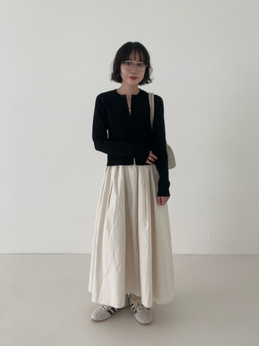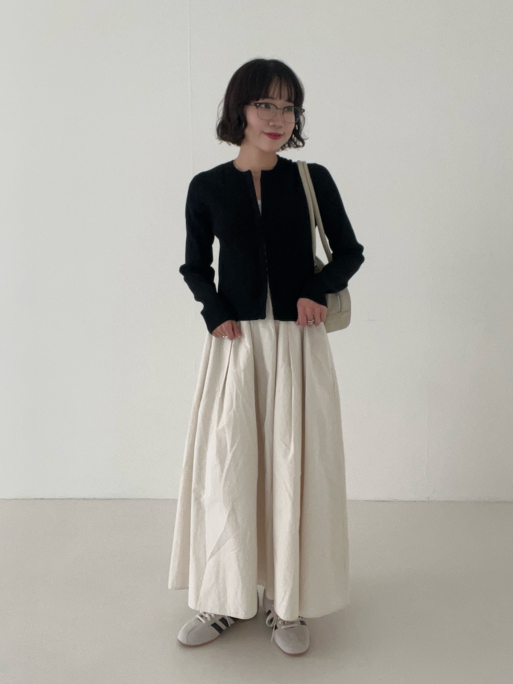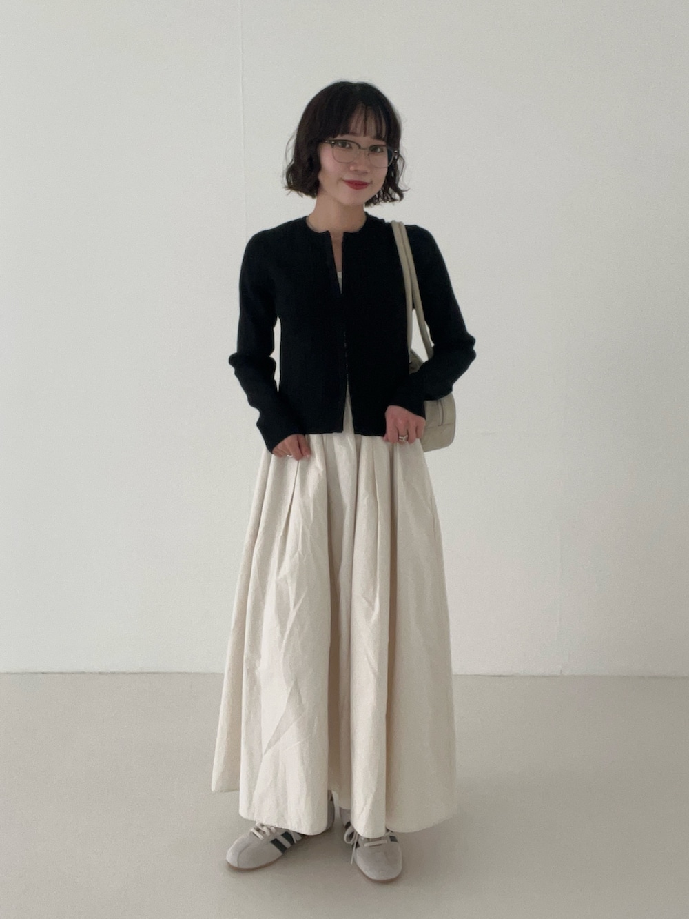 小柄な方はしっかりメリハリがつくようにトップスはコンパクトなもので合わせるのがおすすめです◎
