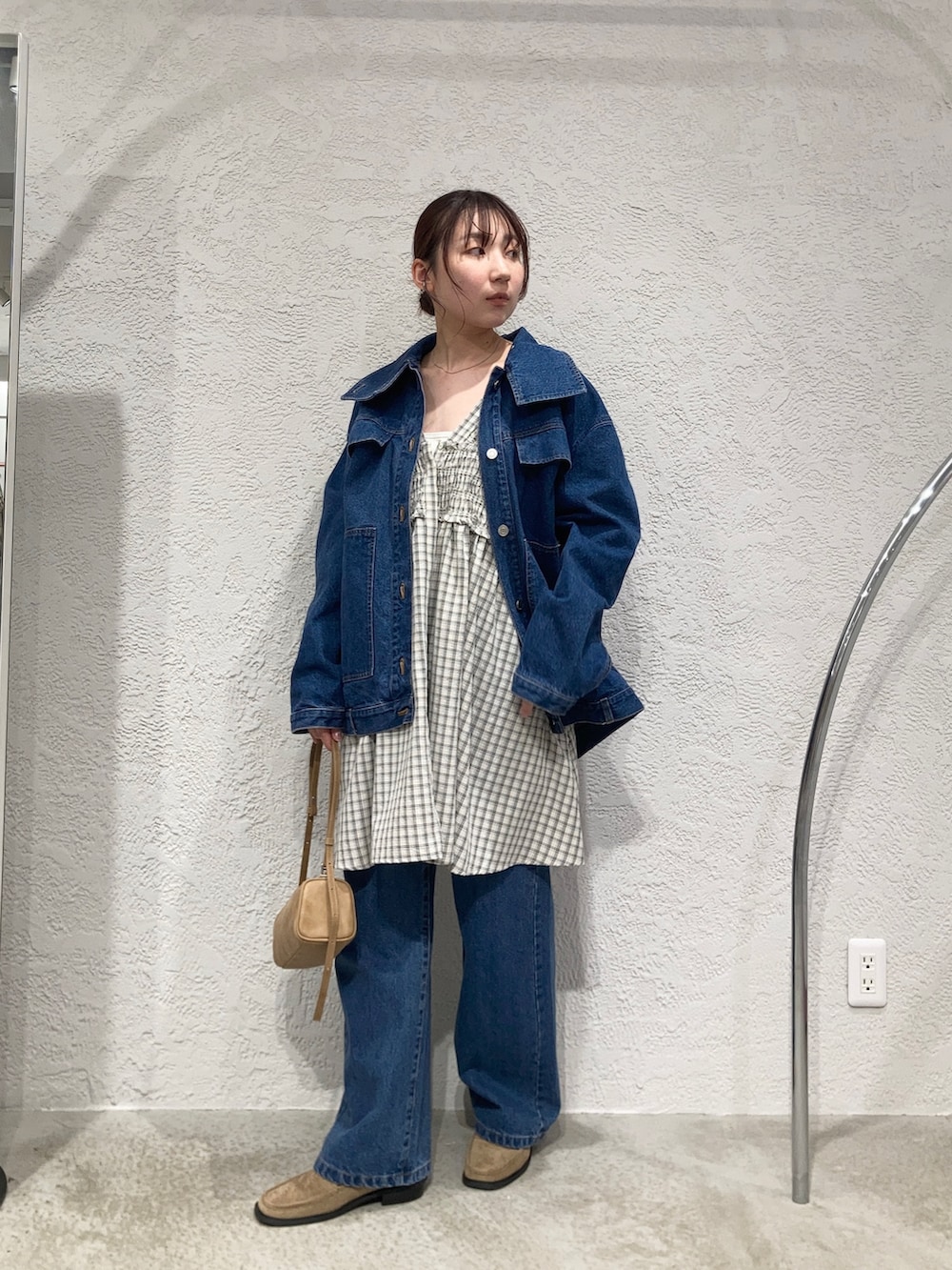 少しオーバーサイズなデニムブルゾンで、かわいさのあるミニワンピに大人っぽさをプラスしました!