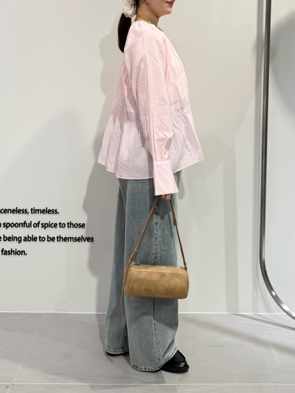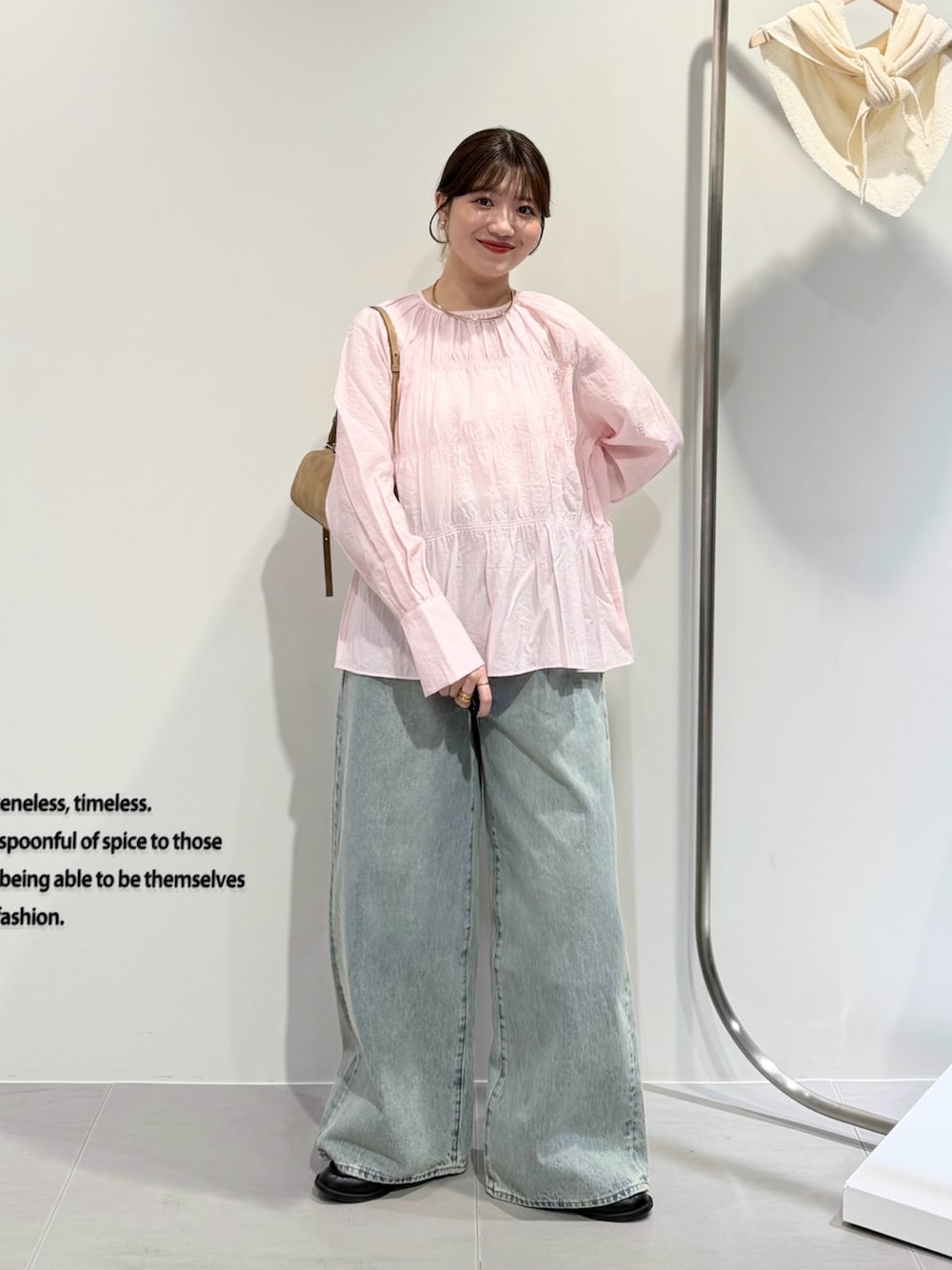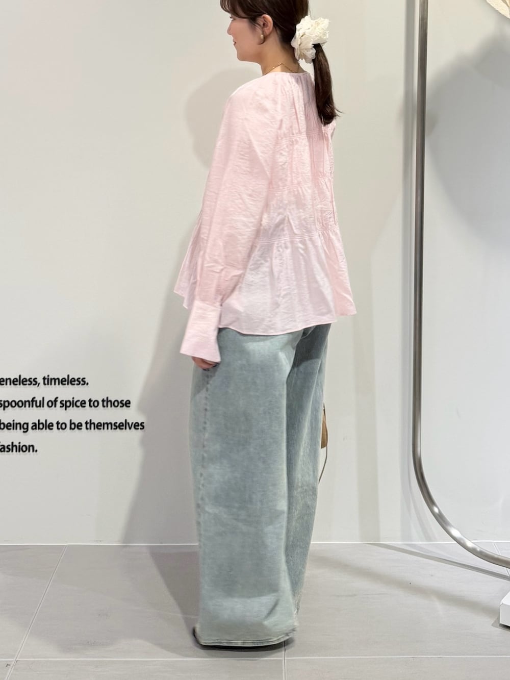 デニム合わせで淡色スタイルに◎