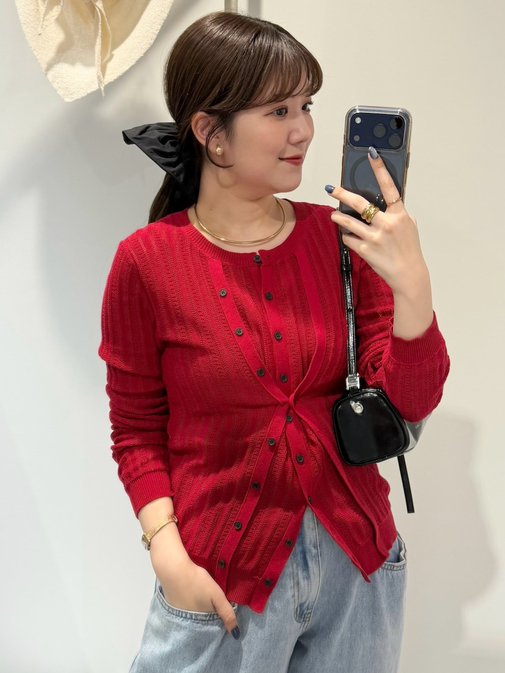 赤×デニムの王道スタイルが