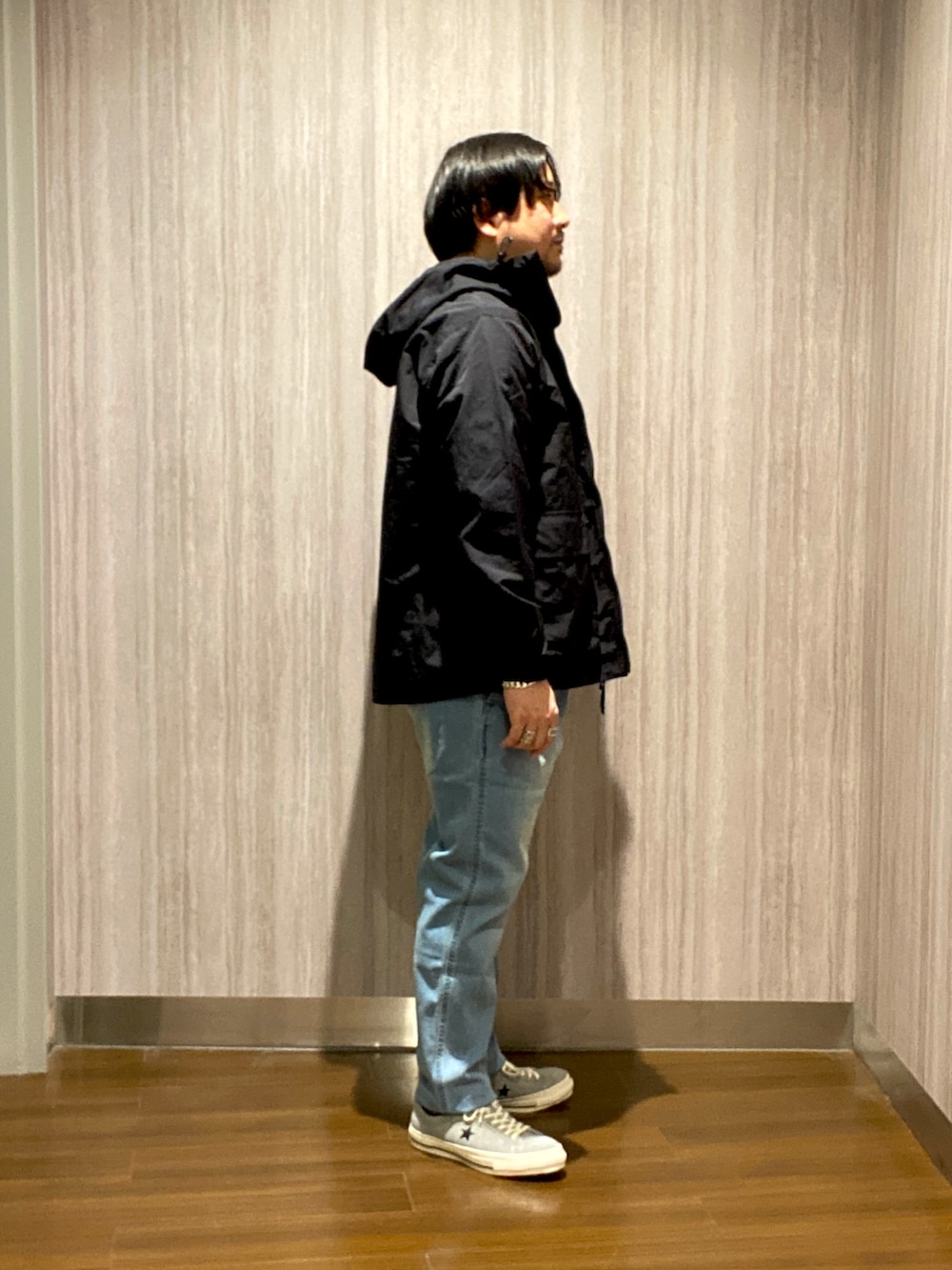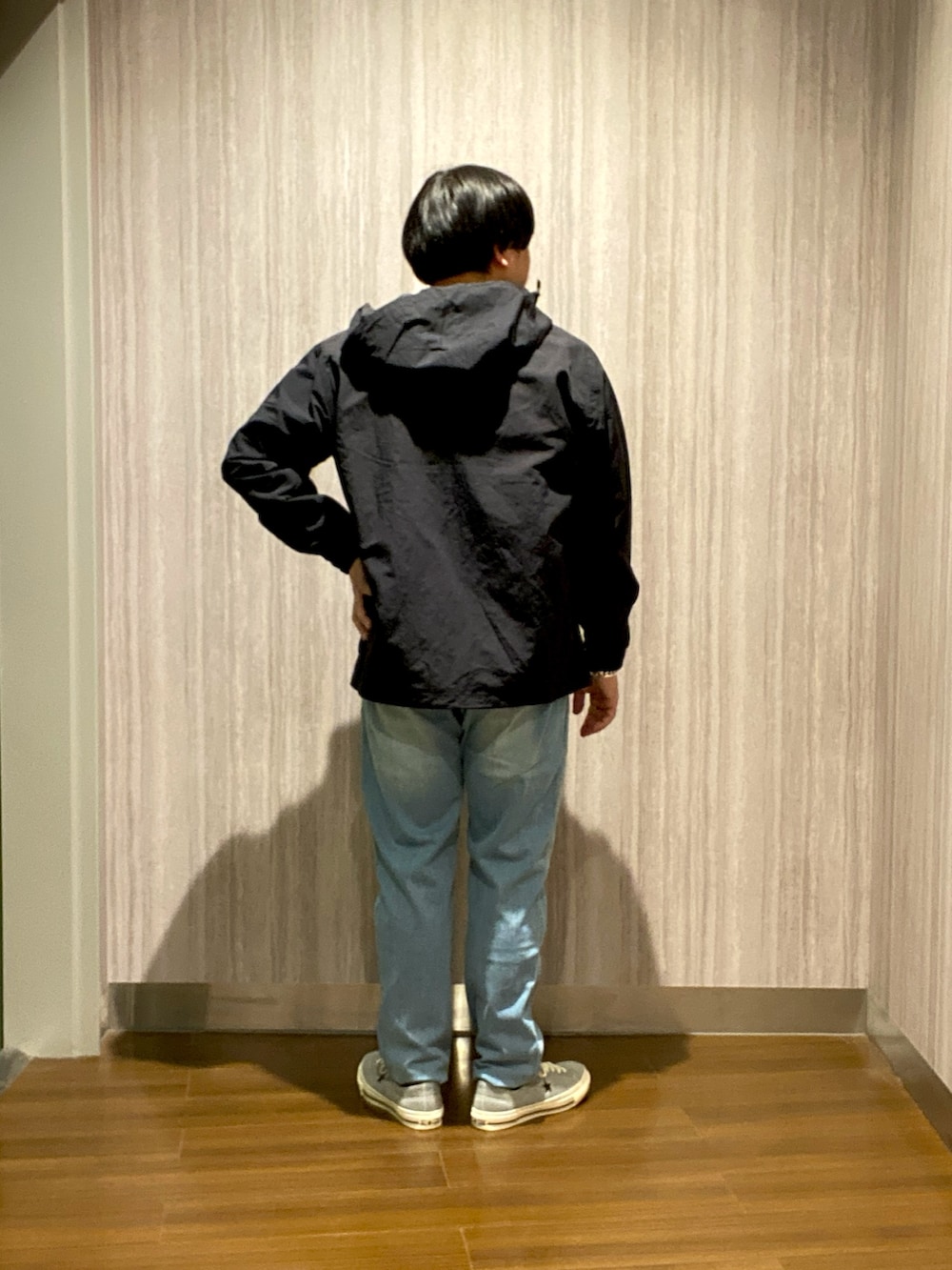 サイズ感は結構ゆったりシルエットですが、裾のドローコードでフィット感も調整出来ますよ。